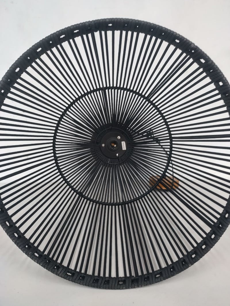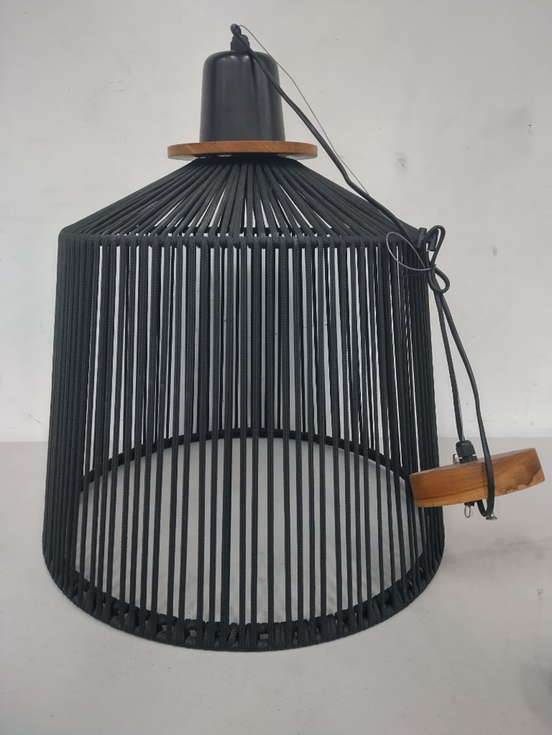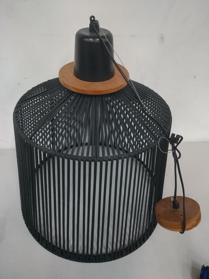 RRP: $680, Ruby hanging pendant, black finish, rope designDimensions L:41 W:41 H:49