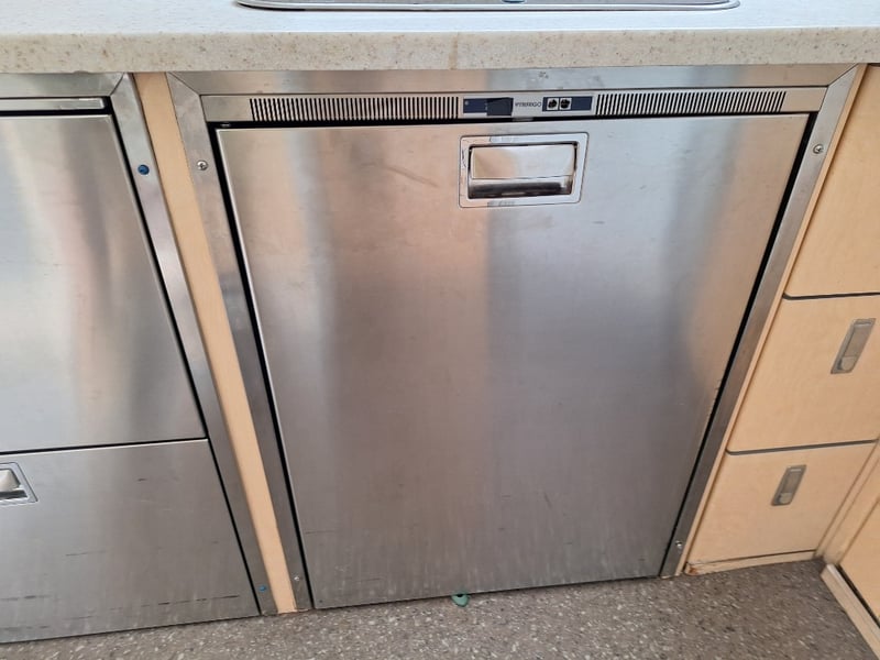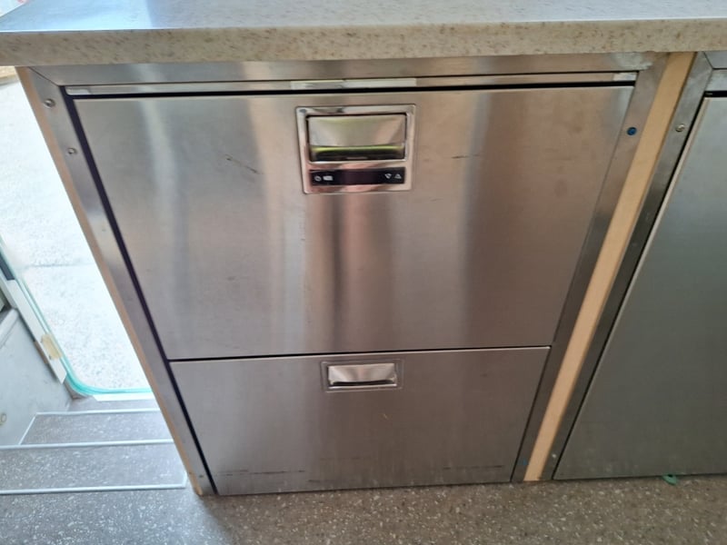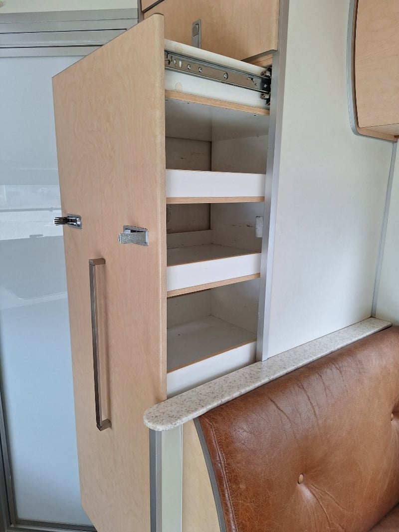 •	Galley-style kitchen: gas stove, twin under-bench fridge/freezers, air fryer, sink, large slide-out pantry.
