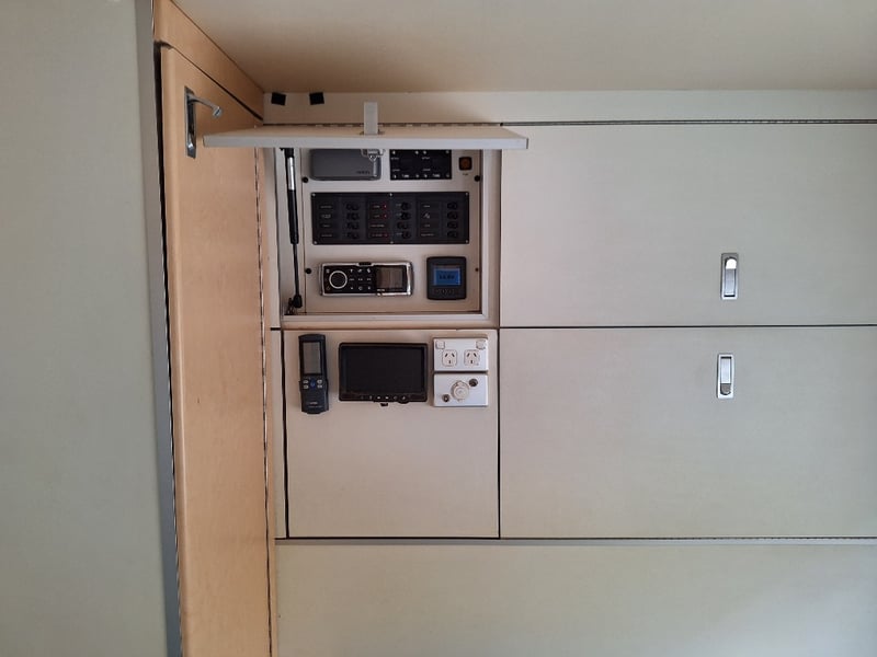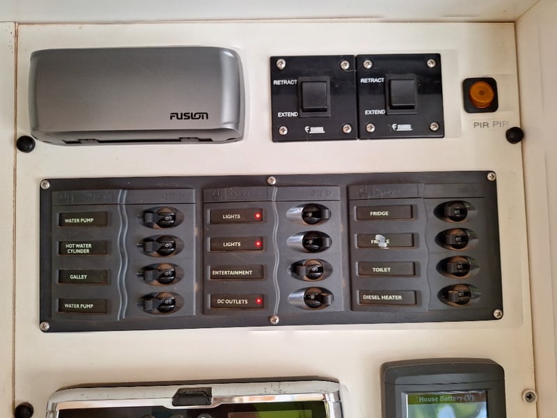•	Entertainment: wall-mounted TV/DVD, Fusion music system, panoramic windows with flyscreens & sun blinds.