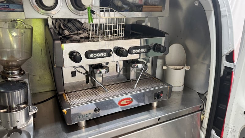 Description/extras: Air Conditioning, Power windows, Central locking. Full barista setup, Generator Set up with connected full tank, 240v setup, fridge, Grinder, Roof racks, Cummins- Onan RV QG 3600 generator. minor wear and tear.