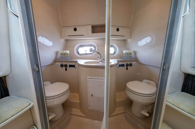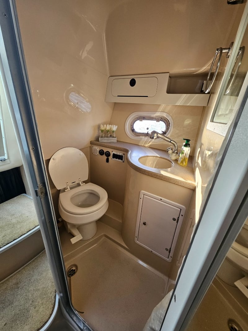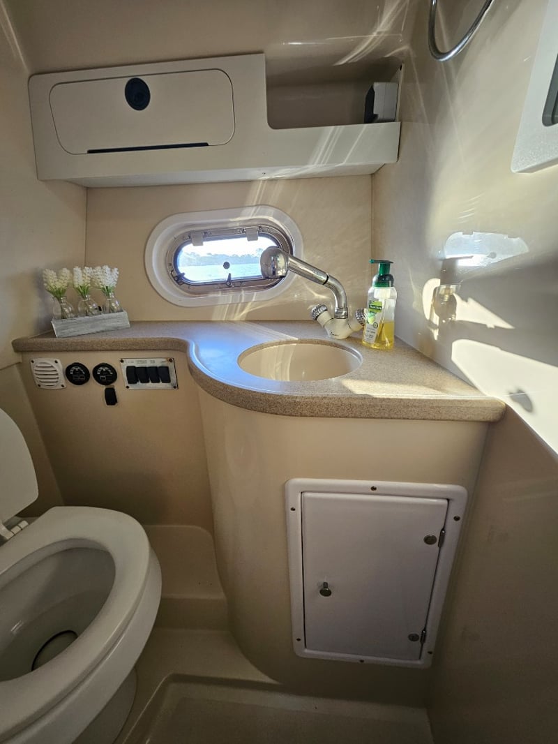 Powered by twin Mercury MAG MPI 350hp engines (only 508 hours) and backed by a Kohler generator, the Vista 328 offers reliable performance whether you’re cruising the coastline or exploring remote anchorages. Recent servicing (September 2024) included replacement of both manifolds and risers, ensuring this vessel is ready for immediate adventure. The intuitive touchscreen navigation system makes charting new destinations a breeze.
