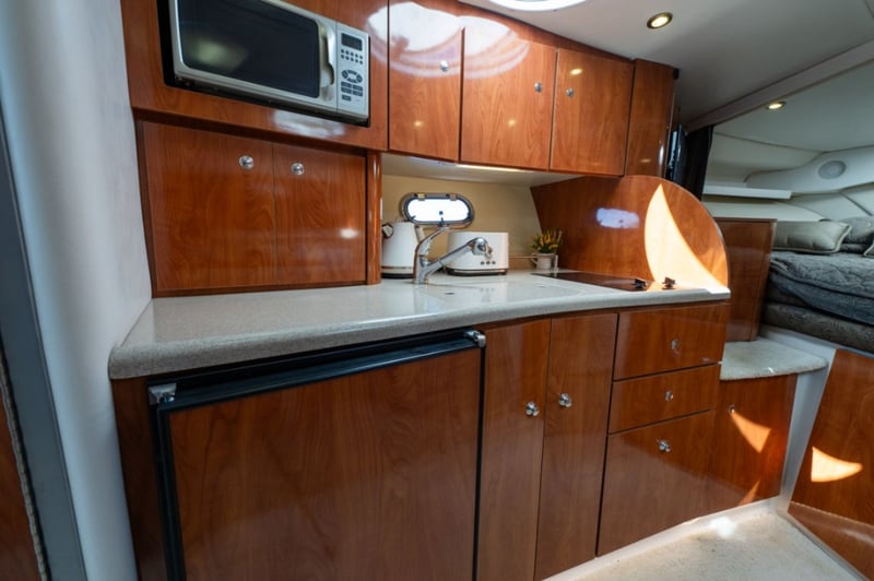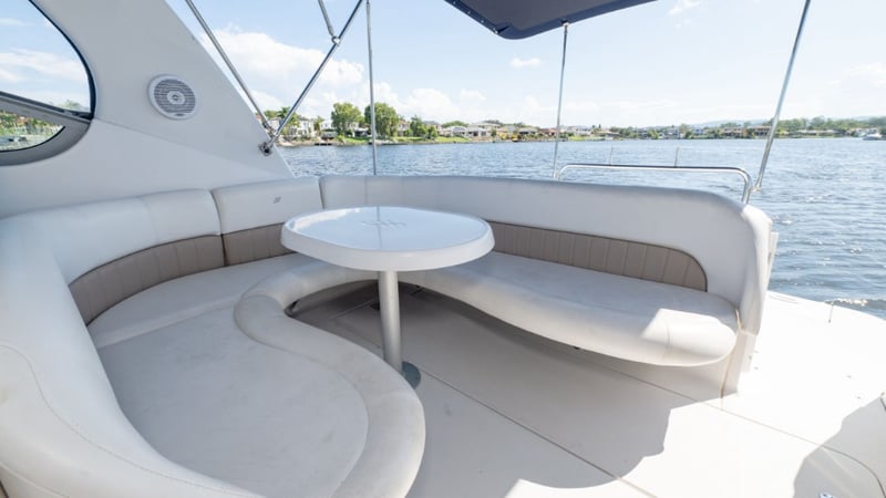 Designed for those who love to share the water with family and friends, the Vista 328 boasts a generous cockpit with a full refreshment centre, icemaker, and refrigerator, perfect for sunset drinks and casual dining.