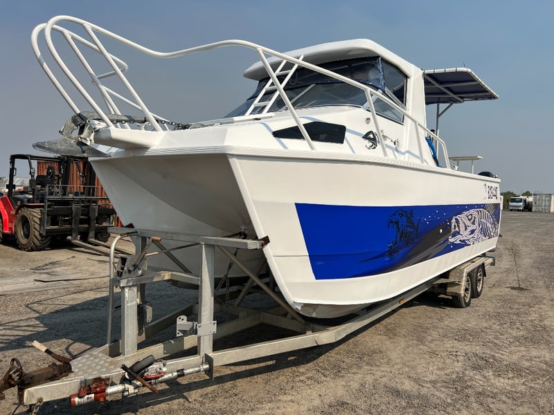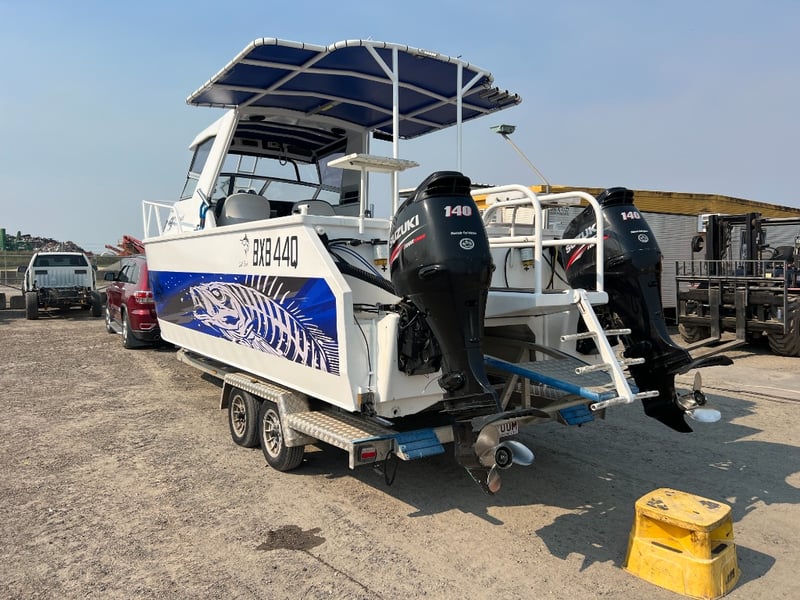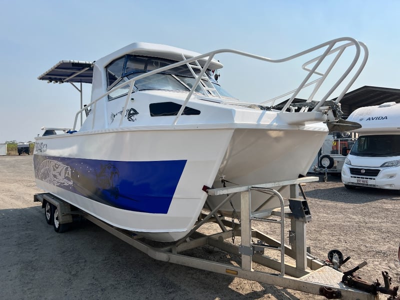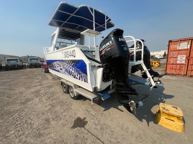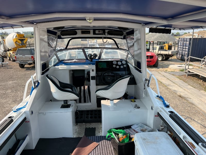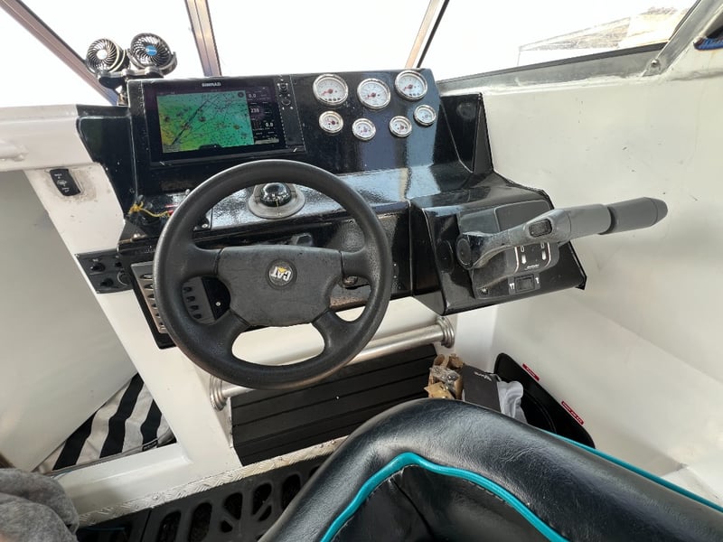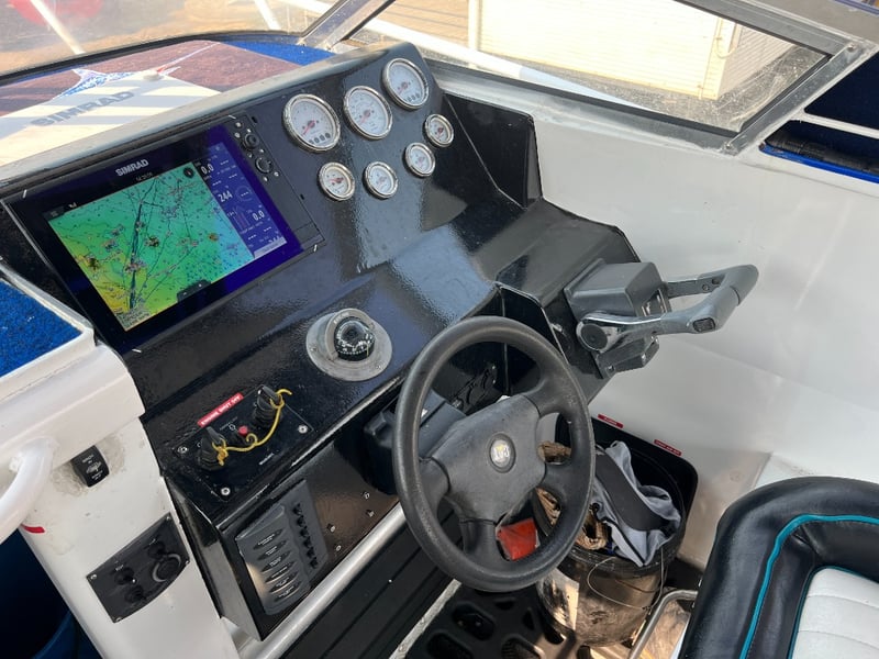Description: 12 Inch Simrad advanced navigation, sonar, and control features, Duel 180L Fuel tanks, E-Perb, Sony CD Player/Radio, Two-Way Radio, Full canopy for shade Protection, Under seat Storage, Bait Boards, Rod Holders, Rear Storage, Led Lighting Throughout, Recently Resprayed both undercoat and base coat and top with Dulux 2-pac.