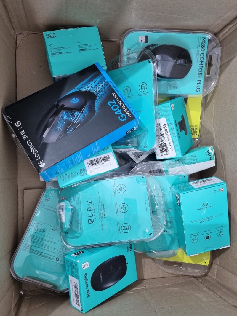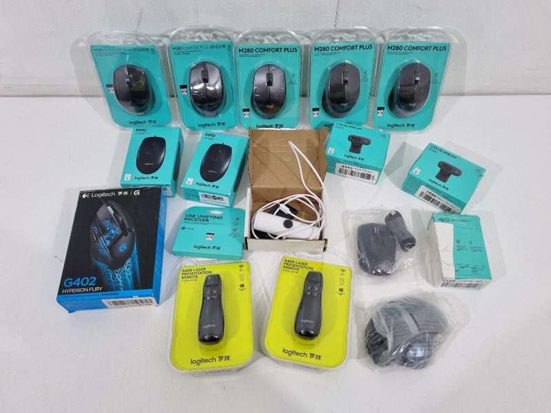 Office equipment, Logitech, Model: assorted, includes mice, webcams and more, Sold as lot