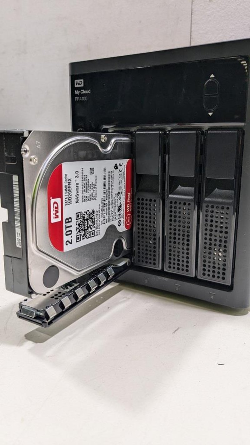 Server - Western Digital My Cloud, M/N: PR4100, S/N: WUBP28510320Storage: 4 x 2.0TB WD HP Prodesk 400 G4 Business PC, S/N: AUD7320GS9Sold as a lot.Note: items are untested.