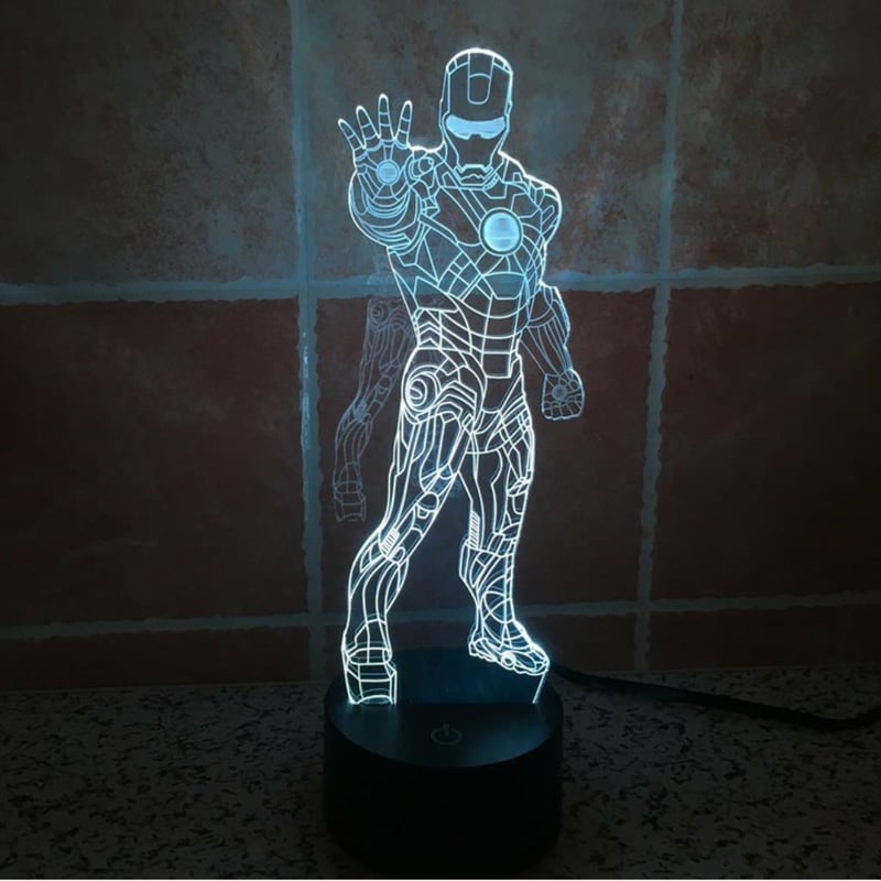 Night Light Children’s 3D Illusion Light 7 Changing Colours Touch Switch Acrylic 20cm-25cm Tall approx. USB Power. (NEW IN BOX) IRON MAN