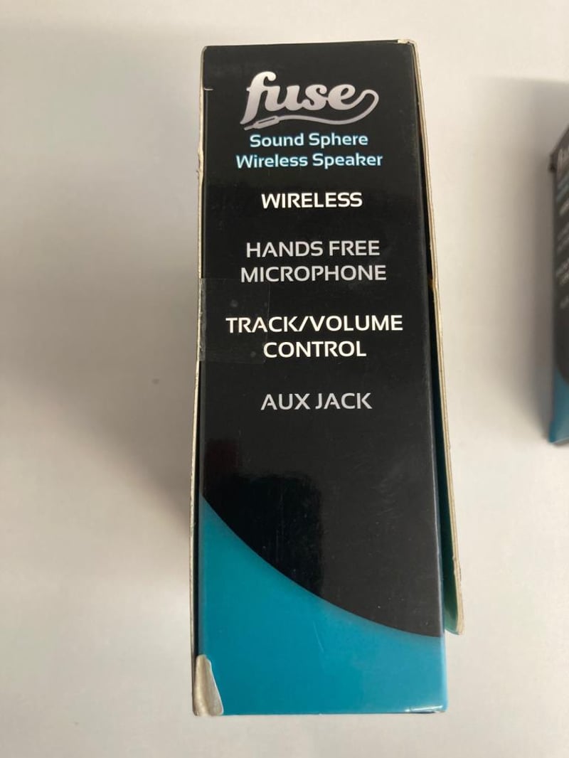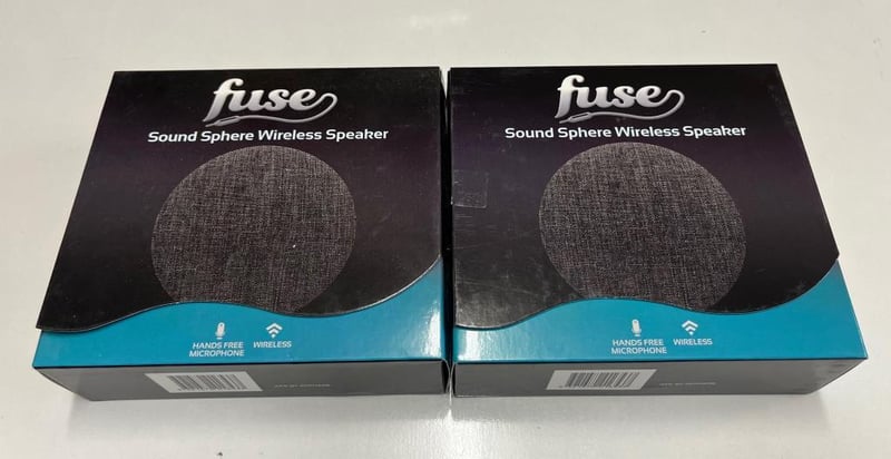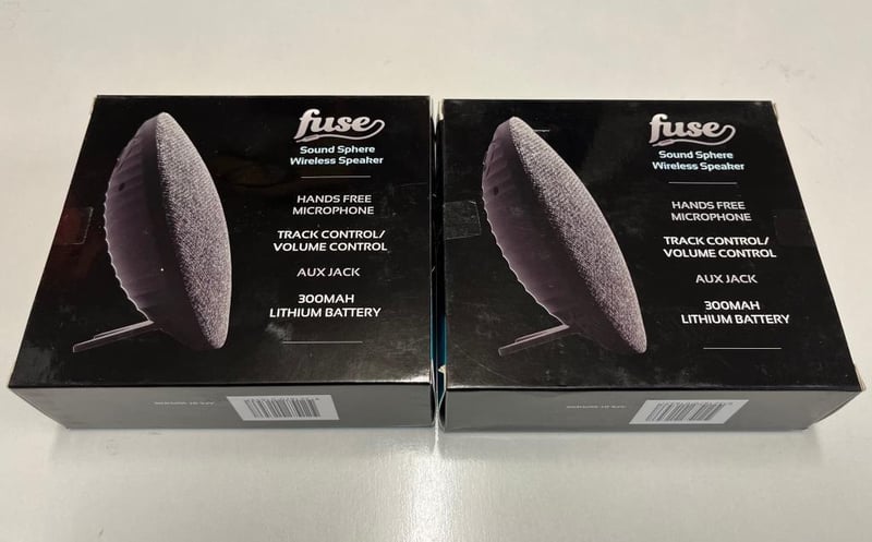 2 X Fuse Bluetooth Wireless Sound Sphere Speaker, Wireless Mic, 300mAh Lithium Battery, Flat or Stand modes, Volume and Track Control, AUX Jack, Brand New SOLD AS 1 LOT