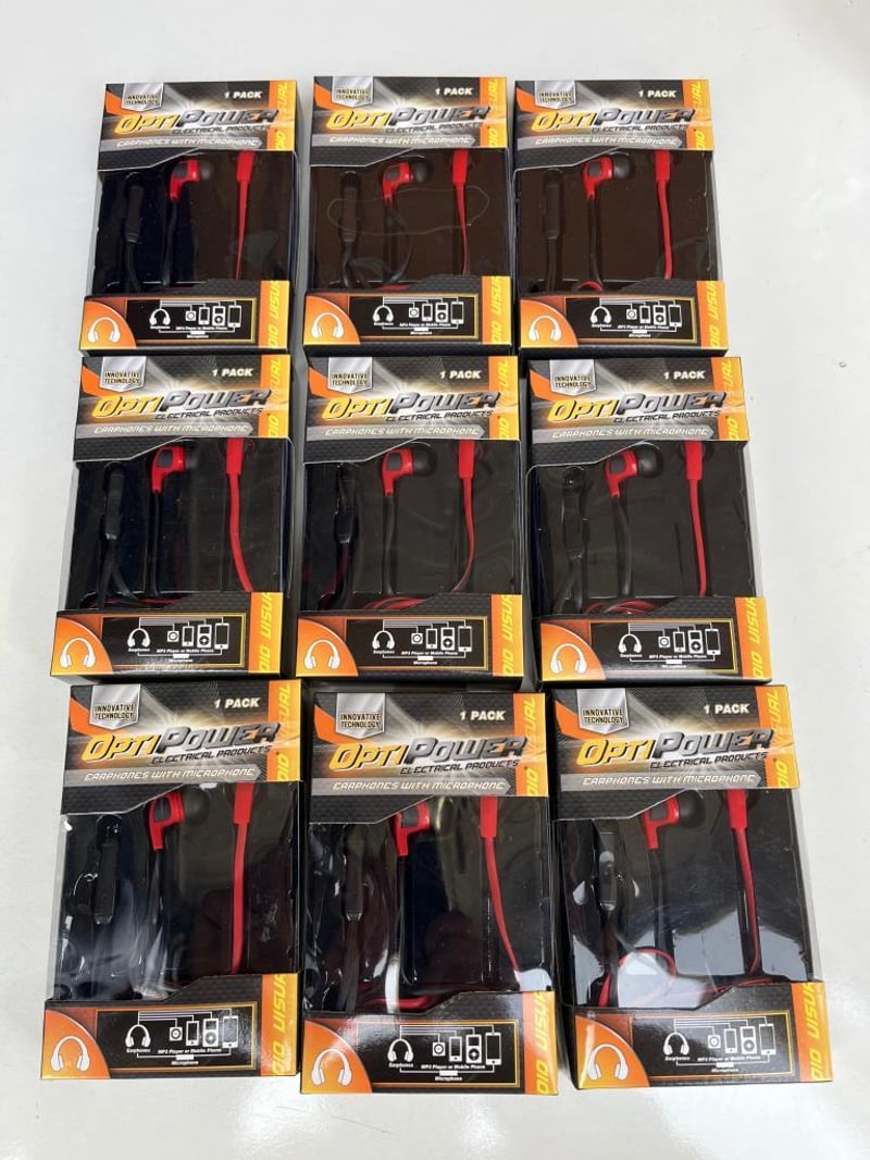 9 X Opti Earphones with Microphone ideal for phone, laptop, pc, tablet use Brand New SOLD AS 1 LOT