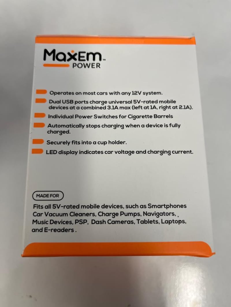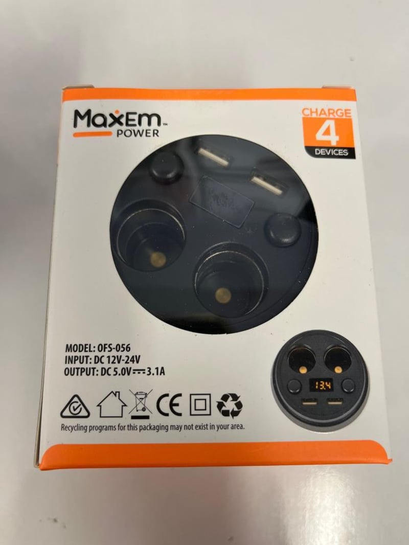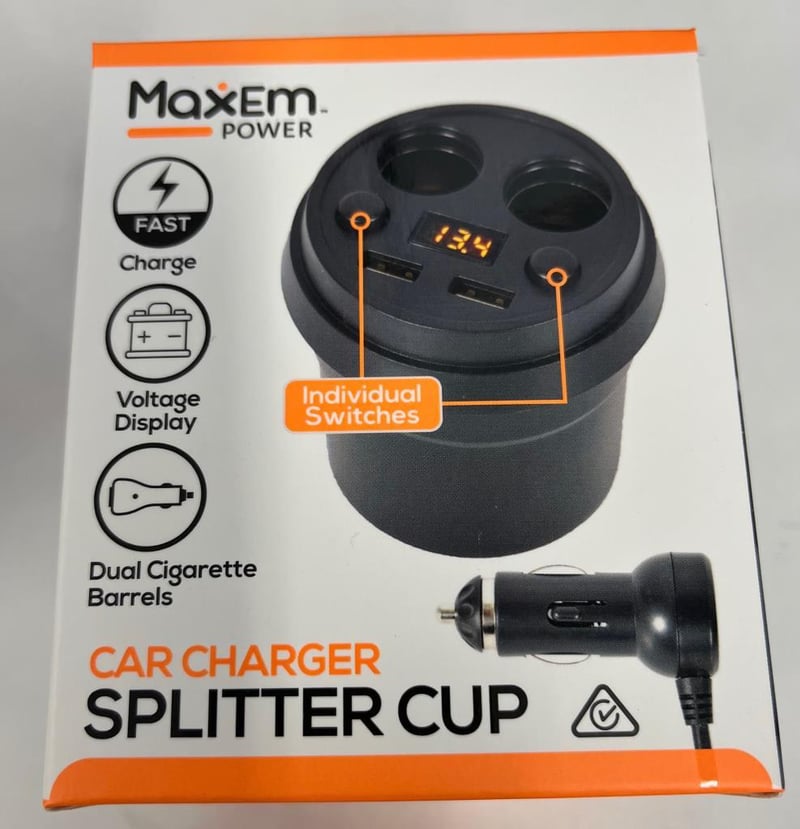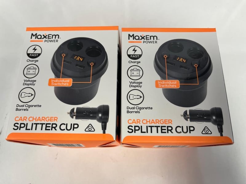 2 X 4in1 Cup Car Charger, 2 X USB Ports, 2 X 12V Outlets with Switches, Auto stop charge, LED Charge and Car Voltage display SOLD AS 1 LOT