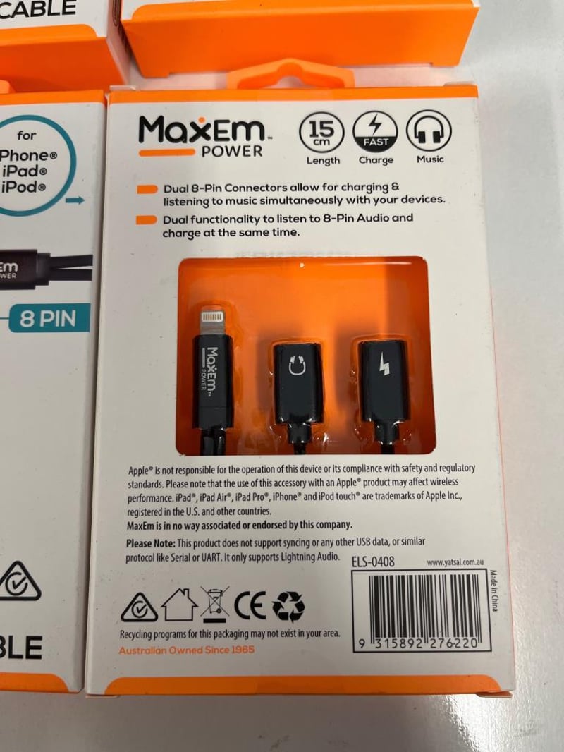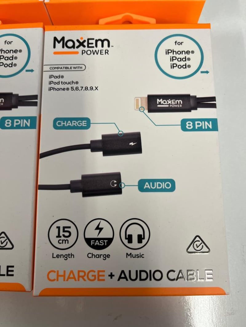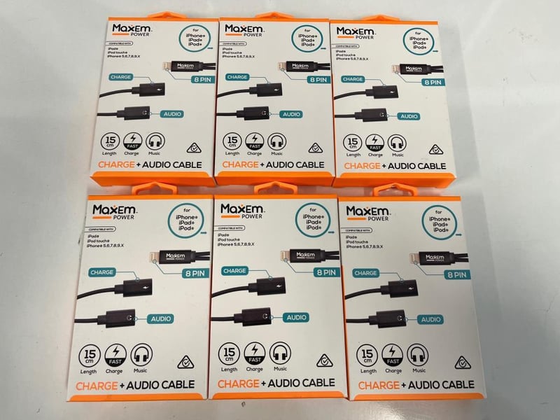 6 X Iphone Cable Charge and Audio input 2in1, Charge and Listen Simultaneously RRP $$29.95 each SOLD AS 1 LOT