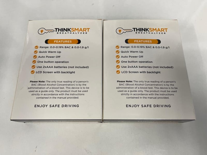 2 X ThinkSmart Breathalysers, Digital Display, 5 x Re-usable Mouth Pieces SOLD AS 1 LOT