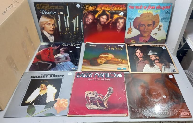 Records, assorted vintage vinyls induing, Barry Manilow, Bee Gees, Shirley Bassey, and more