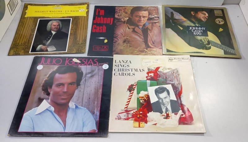 Vinyls, assortment of vinyls Including, Johnny Cash, Lanza, Julio Iglsias and more Sold as lot