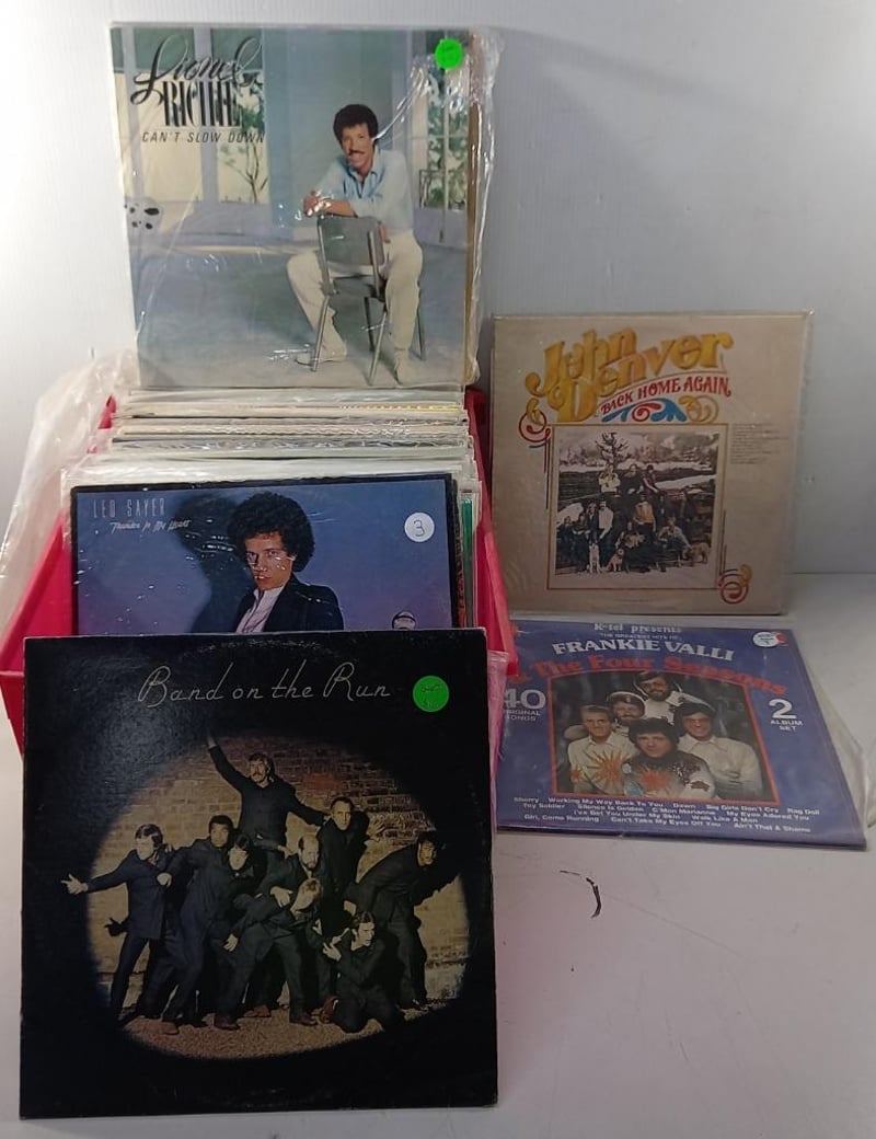 Vinyls, assortment of vinyls Including, John Denver, Frankie Valli & The four seasons, Leo Sayer and more