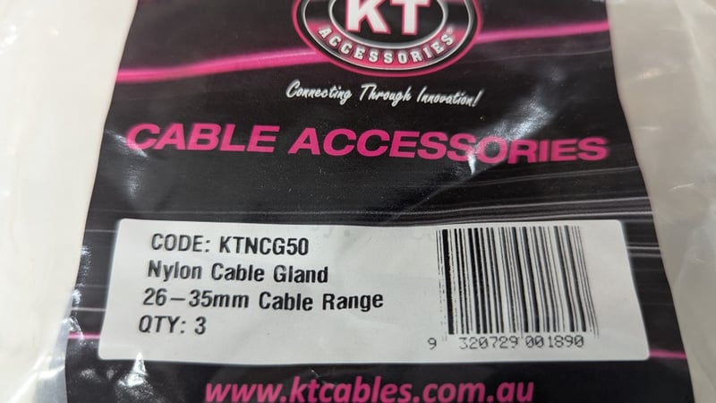 Nylon Cable Glands, KT Cable Accessories, Model: KTNCG50, 26 - 35mm Cable Range, 3 Per Pack, Quantity Per Lot Sold As Lot