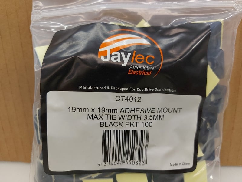 Adhesive Mount, Jay Lec Automotive Electrical Max Tie Width 3.5, 19MM×19MM, Black PKT 100, CT4012, Quantity As LotSold As Lot