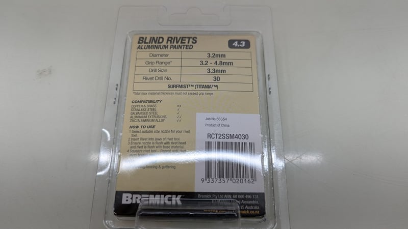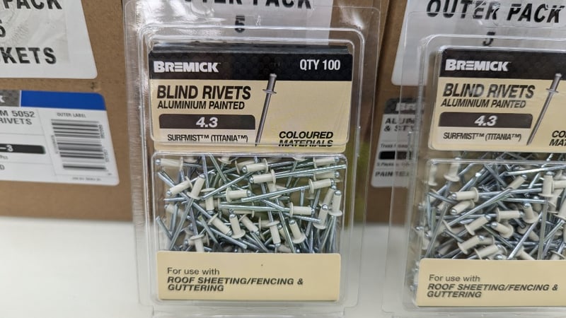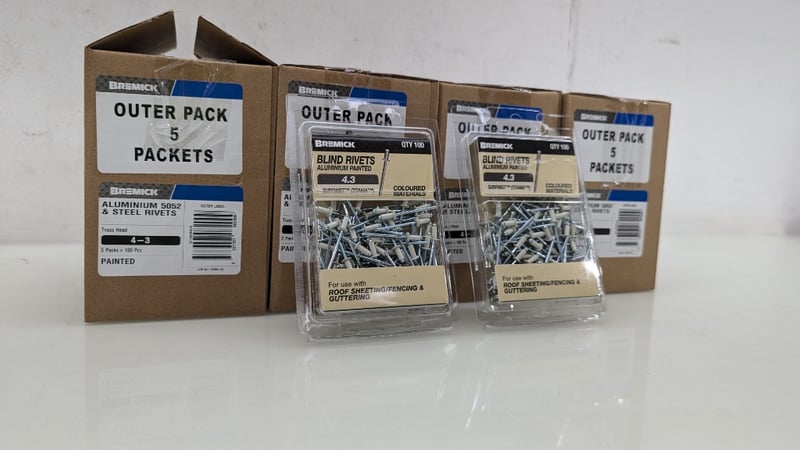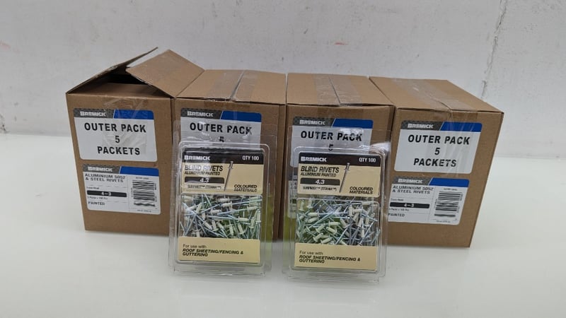 Blind Rivets Aluminium Painted, Bremick, Model: RCT2SSM4030, 4.3, 100pcs Per Pack, Quantity 20Sold As Lot