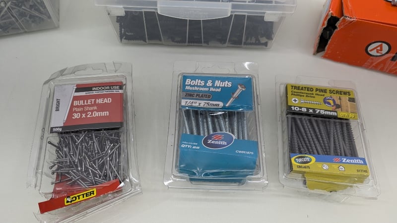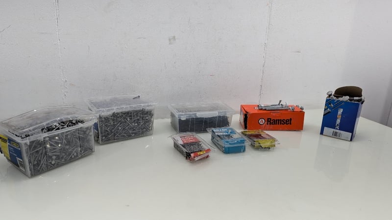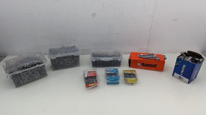 Assorted Nails, Screws and Nuts & Bolts, Brands Include Ramset, Zenith, Bremick, Various Sizes and Styles, Quantity Per Lot Sold As Lot