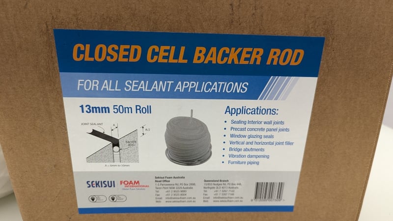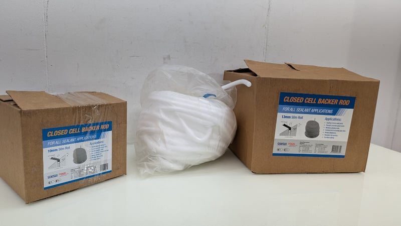 Closed Cell Backer Rod, Sekisui, 13mm 50m Roll × 2, 10mm 50m Roll, Quantity 3Sold As Lot