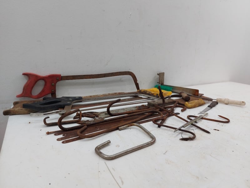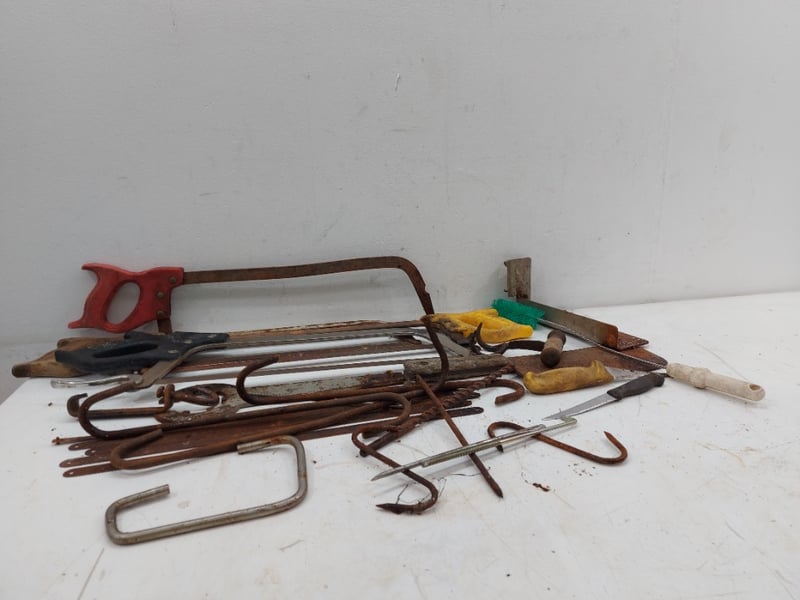 Assorted Lot Includes, Hand Saw, Hooks, Knives, Quantity Per lot Sold As Lot