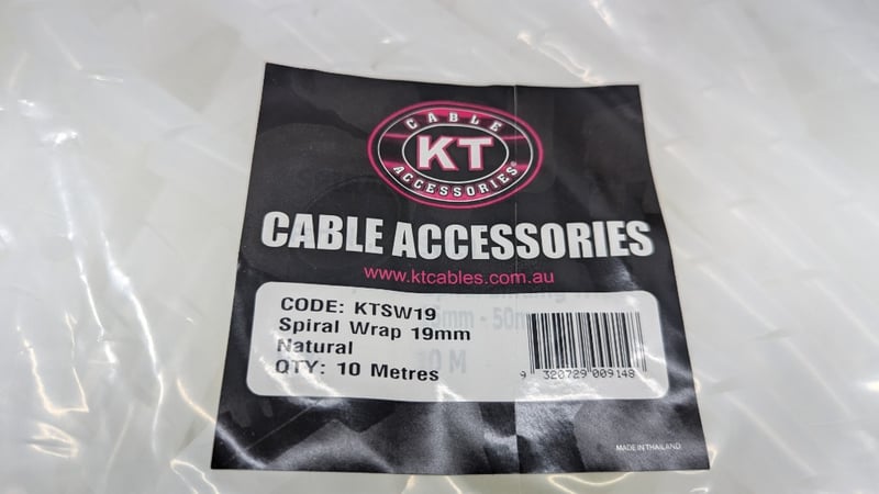 Spiral Wrap 19mm, KT Cable Accessories, Model: KTSW19B, 10m Per Pack, Quantity 6Sold As Lot