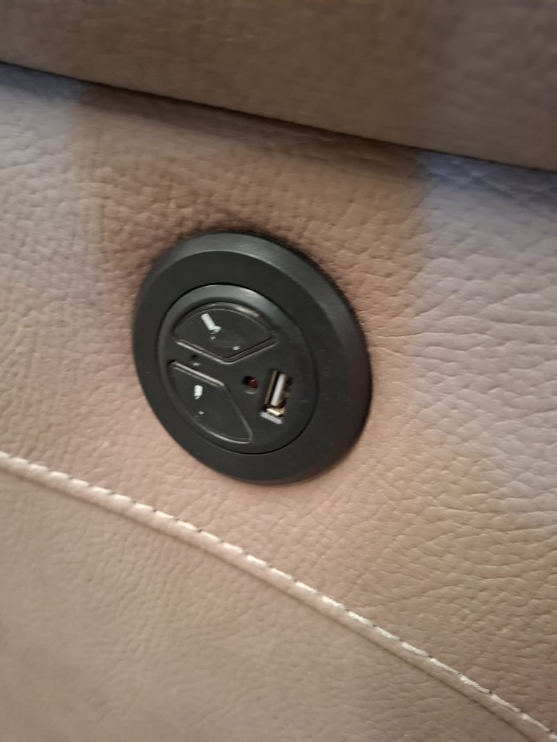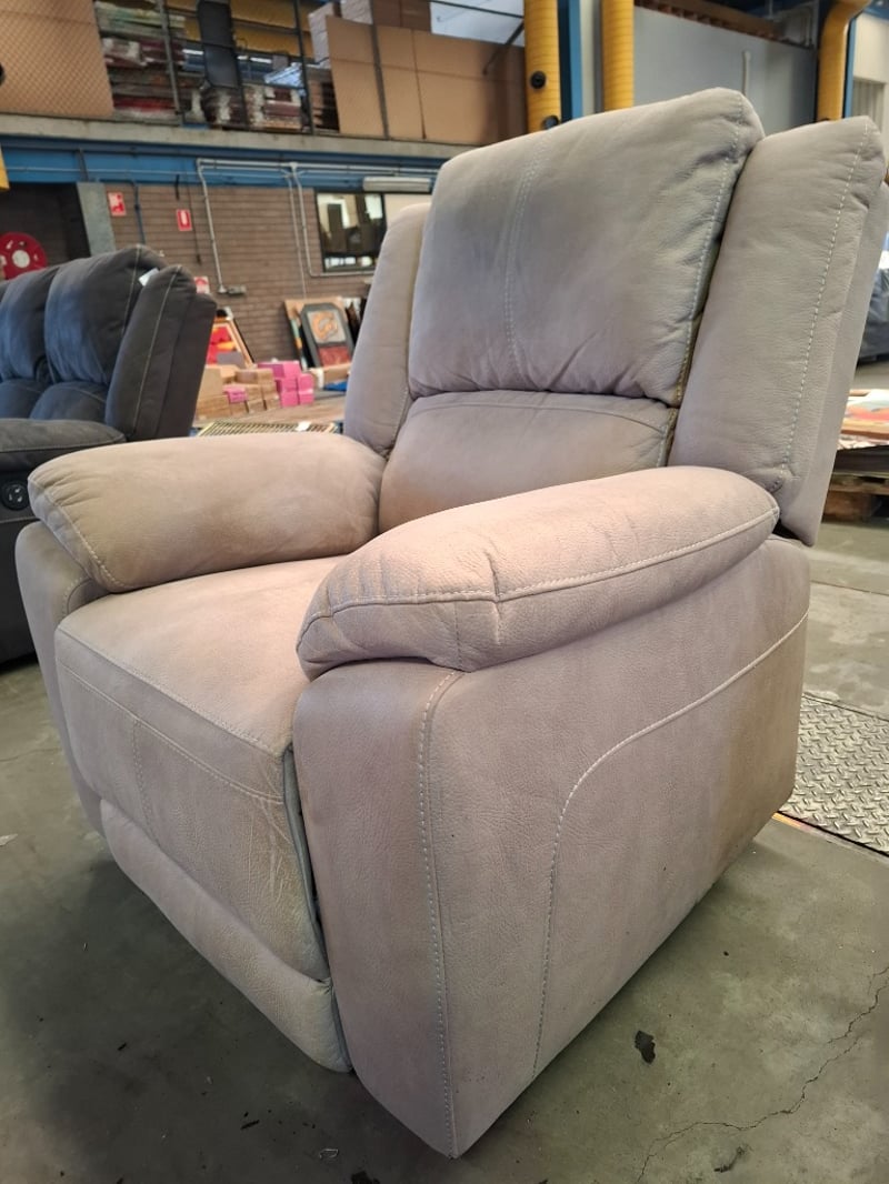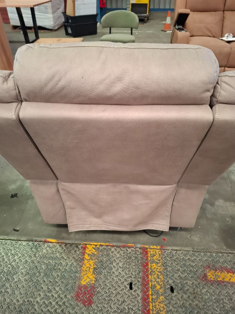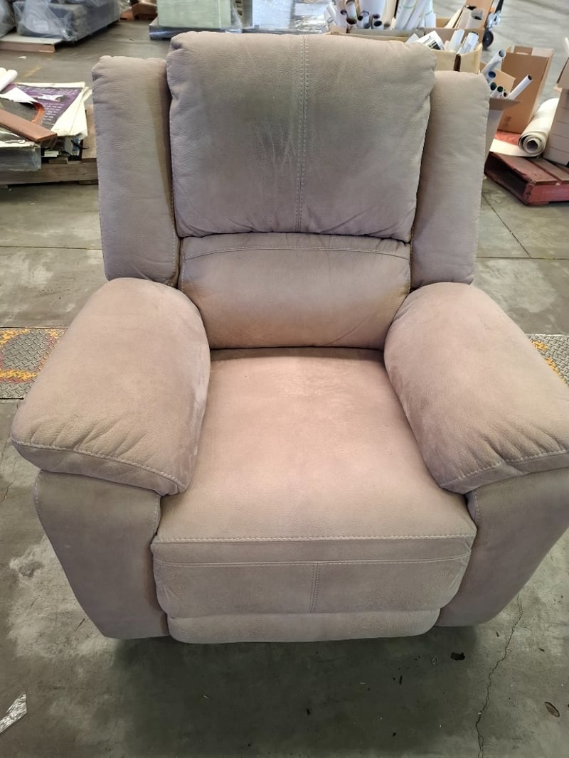 Electric recliner, Dark USB sand coloured fabric leather style, USB portDimensions: 96 cm ( W) x 94 cm ( D) x 105 cm( H)NOTE: CLEANING REQUIRED, WEAR MARKS