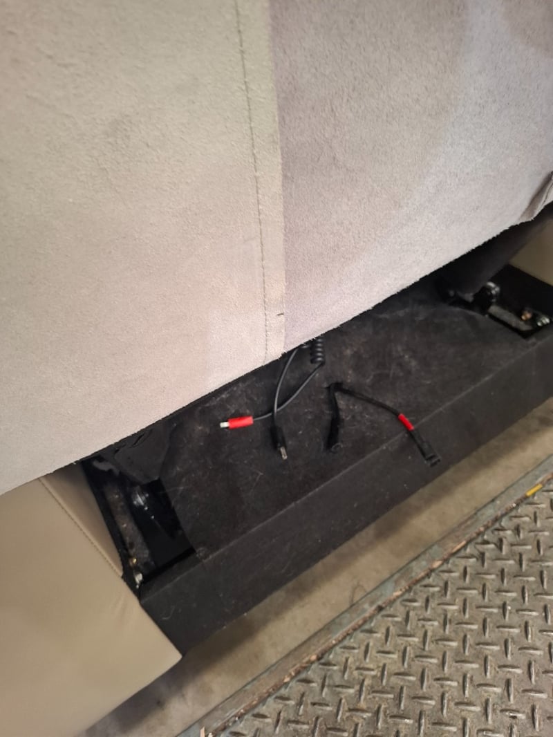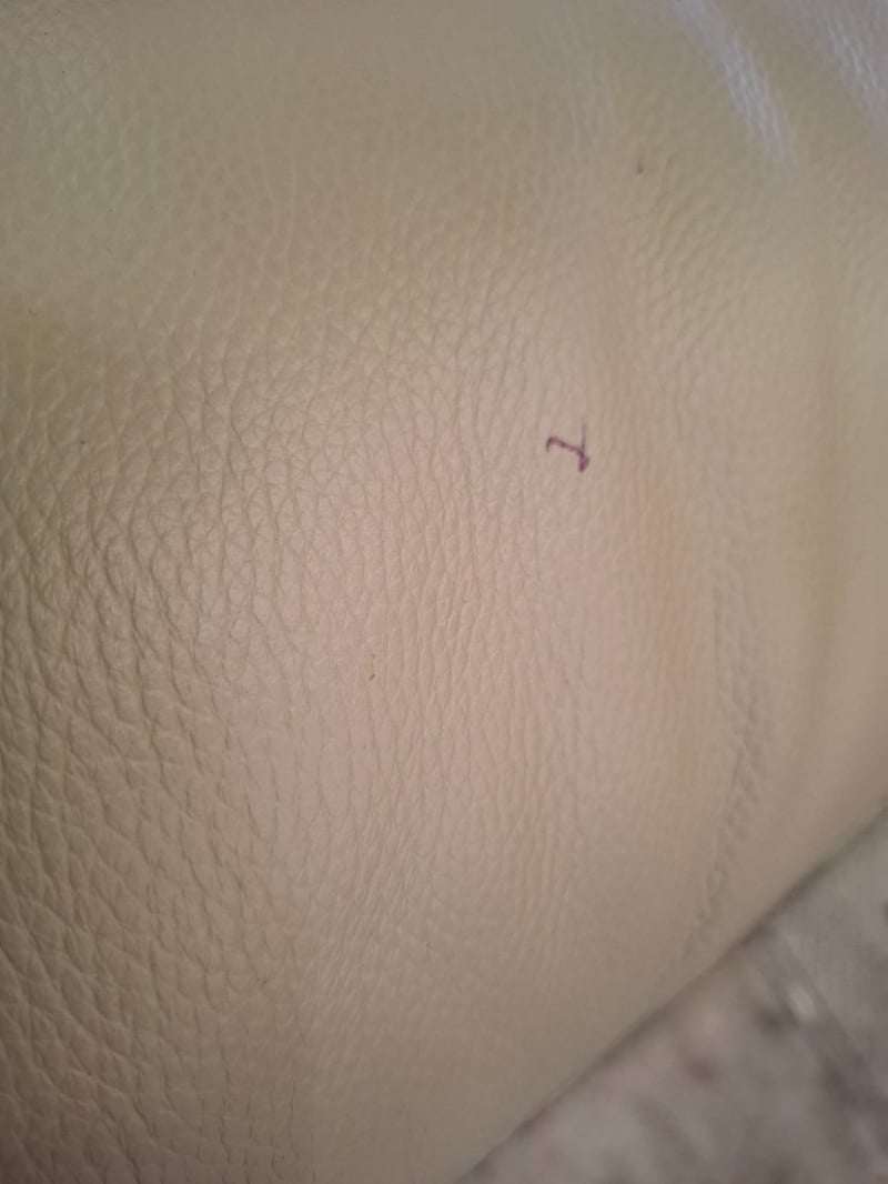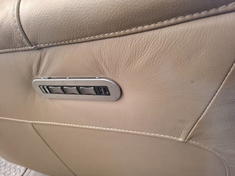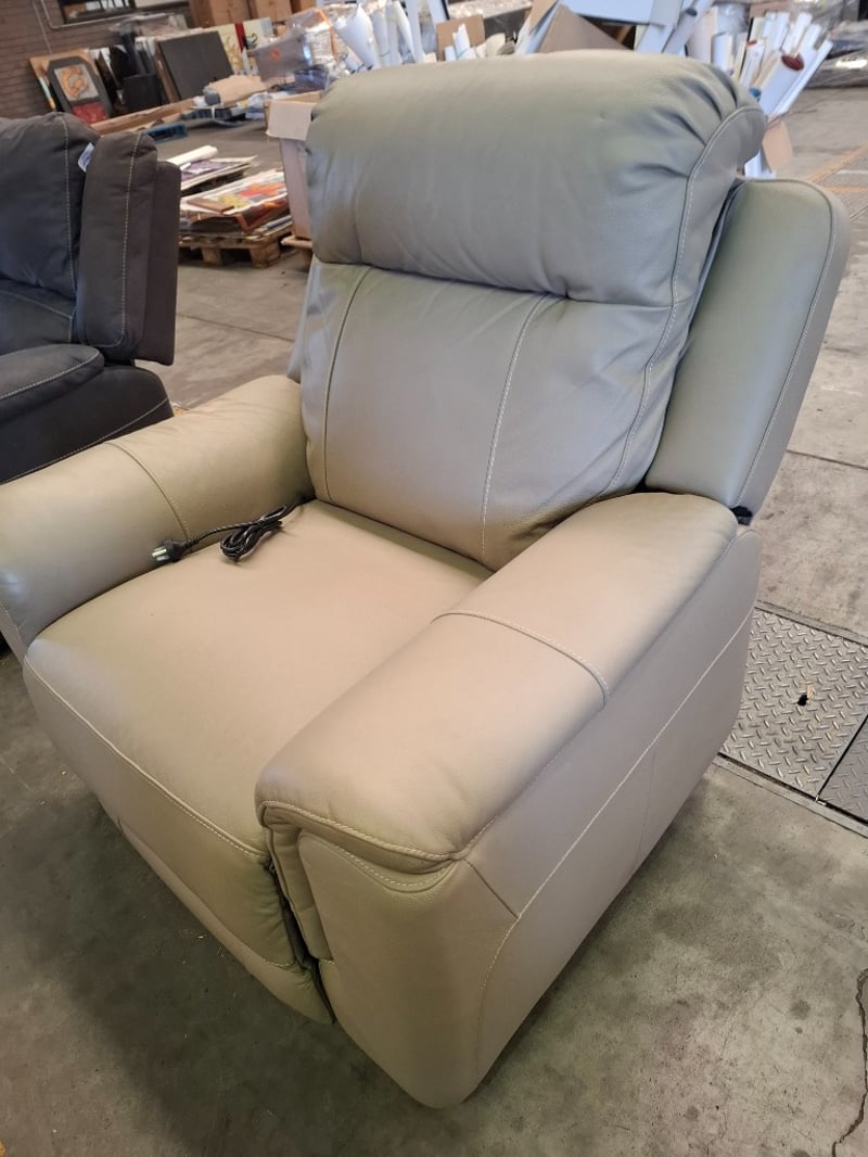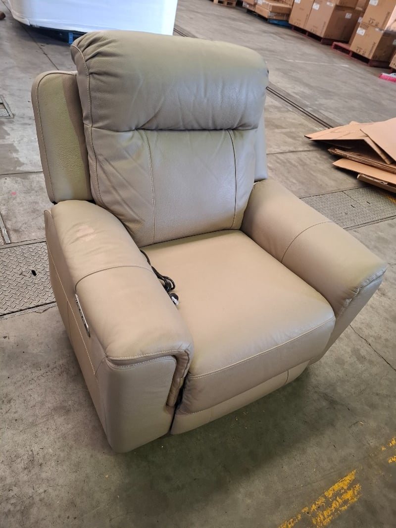 Electric recliner, sand coloured leather style, USB portDimensions: 100 cm ( W) x 100 cm ( D) x 107 cm( H)NOTE: VISIBLE STAIN , PENCIL MARK, INSPECTION RECOMMENDED