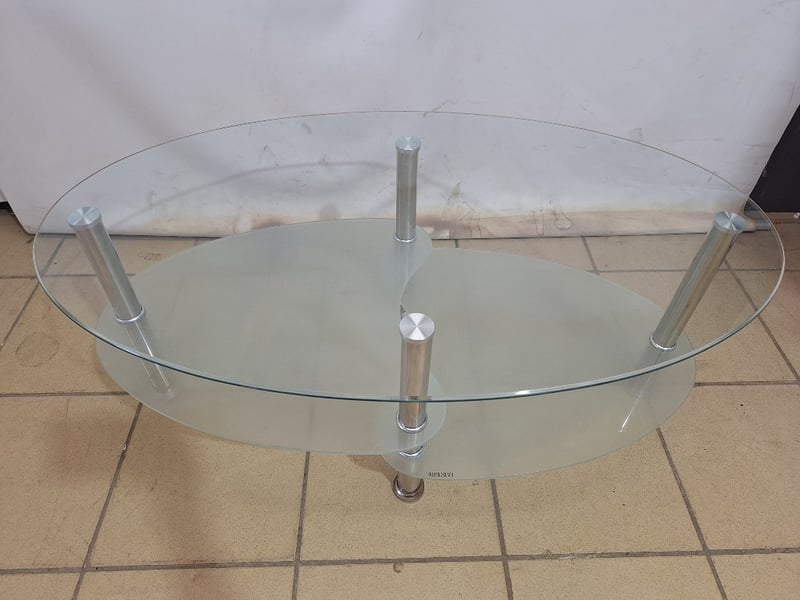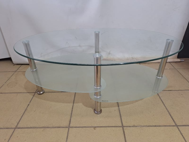 Two-tiered Oval Glass Coffee Table, Metal StyleDimensions H:41cm W:100cm D:60cm