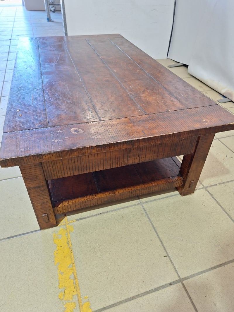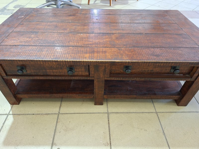 Coffee Table, 2 Drawers Can Open Both Sides Of Table, Timber Style, Dark Brown Finish
