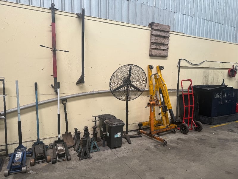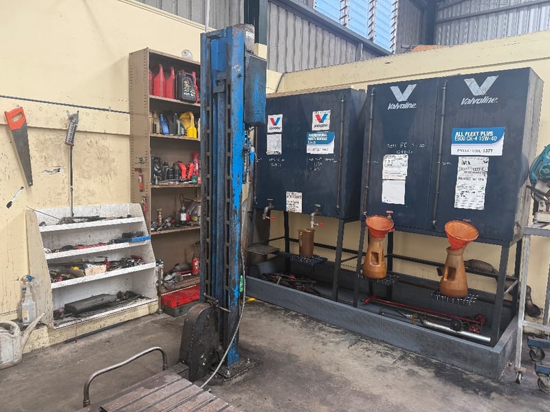 Complete Mechanical Workshop All sold as one lot Fully Equipped and ready to go - Must be removed within 10 days Quality Equipment includes: - 4 Post Vehicle Hoist - Hydraulic Snap Press - Ansl Injector Cleaner and Flush Bench - UniMig 195 Mig Welder - Engine Hoist & Engine Stand - Mobile Floor Crane, Oxyset - Pedastal Drill & Pedestal Grinders - Commercial Fans - 5 Valvoline Oil Tanks & Dispensers - Grease Guns, Socket Sets - Tension Wrenches 3/4 Drive Set, Spanners - Power and Hand Tools - Oil Waste System, Wash Tub - 3 Floor Trolley Jacks - 10 Heavy Duty Car Stands - Metal and Timber Storage Units - Workbenches - Drums of Oil, Grease, Fluids, Air and Fuel Filters - Spare Parts - Multi Drawer Storage, Tension Bars, Manuals etc, Plus much more not listed **Perfect Opportunity to start up your own business or increase your existing business**