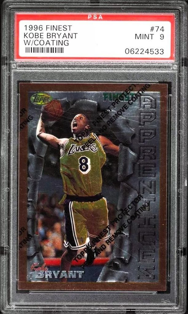 Offered Is A 1996 Topps Finest Kobe Bryant Rookie Card #74, Featuring The Original Protective Peel Coating And Graded Psa 9 Mint. Part Of The Heirs Subset From Topps' Premium Chromium Line, This Card Was Issued During Bryant’S Landmark Rookie Season And Is One Of The Most Desirable Non-Autographed Rookie Cards From The Mid-1990S. Encapsulated By Psa And Preserved In Mint Condition, This Is A Cornerstone Piece For Serious Collectors Of Modern Basketball Icons.