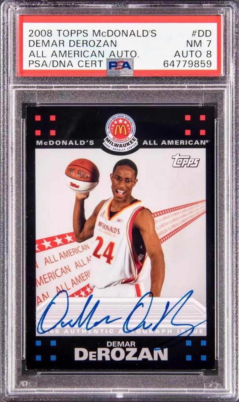 2008–09 TOPPS MCDONALD'S ALL AMERICAN GAME AUTOGRAPHS #DD DEMAR DEROZAN ROOKIE – ON-CARD AUTO | EARLY SIGNED ISSUE OF NBA STAREarly Signed Card Of A Future Nba All-Star From A Prestigious Mcdonald'S All American Release – 2008–09 Topps #Dd Demar Derozan Autograph Rookie. A Standout Piece In Any Basketball Autograph Collection. Nba Basketball Trading CardOverview:Featured Here Is An Early-Career, On-Card Signed Rookie Card Of Nba Standout Demar Derozan, From The 2008–09 Topps Mcdonald'S All American Game Autographs Subset, Card #Dd. This Issue Originates From One Of The Most Iconic High School Basketball Showcases In The United States—Topps' Mcdonald’S All American Series—Highlighting Elite Prospects Destined For The Professional Ranks.Signed Boldly On The Front In Blue Ink, This Card Represents One Of Derozan’S First Certified Autographs Prior To His Entry Into The Nba.Key Features:This Limited Edition Card Was Produced To Commemorate Derozan’S Participation In The 2008 Mcdonald'S All American Game, A Platform That Has Historically Featured Future Hall Of Famers And Perennial All-Stars. The Card’S Clean Design Frames A High-Resolution Action Image Of Derozan In His Mcdonald’S Uniform, With A Bold Topps-Certified Autograph Directly On The Card Surface—An Increasingly Valued Trait In An Era Dominated By Sticker Signatures.The Card Is Officially Part Of The Topps Autographs Programme, With A Printed Statement Of Authenticity On The Reverse Confirming The Signature As Authentic And Obtained Directly From The Athlete. As A Rookie-Year Autograph, Its Significance Lies In The Timing: Issued Before Derozan’S Draft Selection In 2009 By The Toronto Raptors, Where He Would Begin His Rise To Prominence.Why This Card Is Collectable:Demar Derozan Has Forged A Distinguished Nba Career, Known For His Midrange Excellence, Leadership, And Consistent All-Star-Calibre Play Across Multiple Franchises. Cards From His Pre-Nba Years, Especially Certified Autograph Issues Like This One, Have Grown Increasingly Collectable As Enthusiasts Seek Early Examples From His Trajectory Toward Stardom.This Topps Mcdonald’S Release—Issued Only In Limited Distribution—Holds An Elevated Place In Basketball Hobby Circles Due To Its Prestige And History Of Featuring Eventual Superstars. As One Of The Few Cards Signed By Derozan Prior To His Nba Debut, It Offers A Unique Opportunity To Own A Foundational Piece Of His Sporting Journey.Collector Appeal:This Card Is Ideal For Rookie Autograph Collectors, Demar Derozan Fans, And Investors Targeting Pre-Rookie Nba Material. The On-Card Signature, Sharp Image Clarity, And Association With The Mcdonald'S All American Programme Make It A Compelling Addition To Any High-School-To-Nba Developmental Narrative. Whether Displayed Or Stored As Part Of A Long-Term Portfolio, Its Provenance And Scarcity Will Continue To Resonate With Discerning Collectors.584976+31