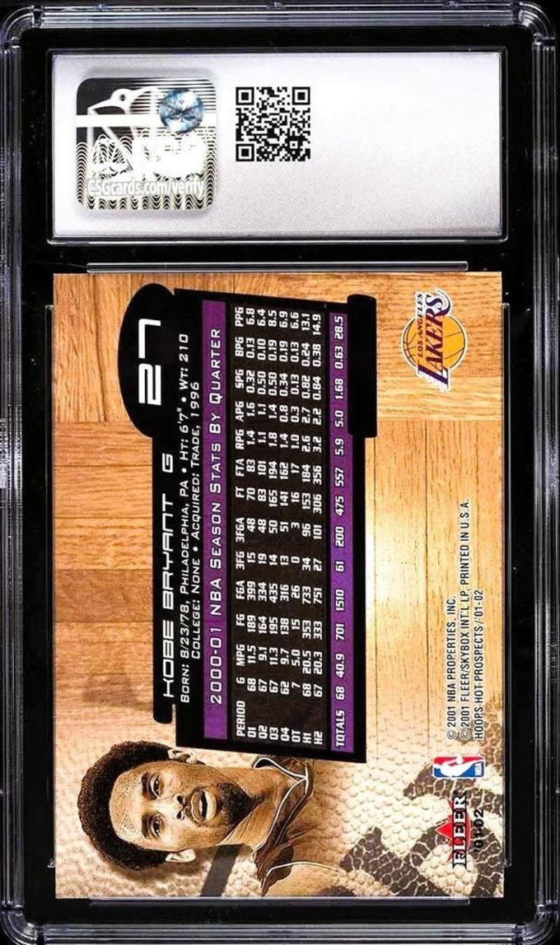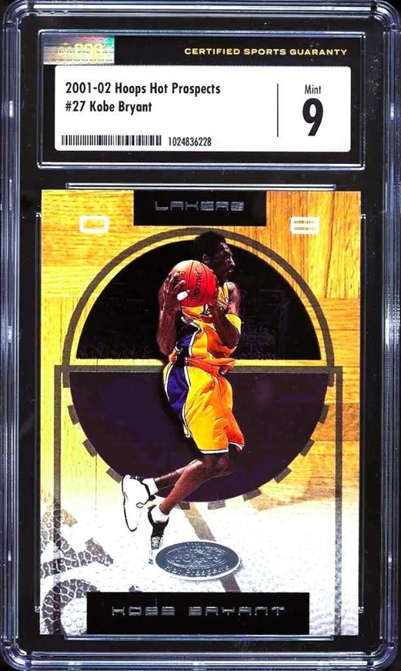 2001 HOOPS HOT PROSPECTS KOBE BRYANT #27 – CSG 9 MINT | RARE MINT CONDITION LATE-PRIME LAKERS ICONA High-Grade, Early-2000S Kobe Bryant Card From The Premium Hoops Hot Prospects Line – Graded Csg 9 Mint And Ideal For Serious Collectors Of The Black Mamba. Nba Basketball Trading CardOverview:Presented For Sale Is A Superb Example Of The 2001 Hoops Hot Prospects Kobe Bryant #27, Graded Csg 9 (Mint). Issued At The Height Of Kobe’S Championship Run With The Los Angeles Lakers, This Card Captures The Mamba In Full Command Of His Game And Global Stature. The Hot Prospects Line, Known For Its Sharp Design And Premium Cardstock, Offered A More Focused And Polished Approach To Player Presentation Than Standard Releases Of The Time.Key Features:Card #27 Showcases Kobe In His Iconic Gold Lakers Uniform, Captured Mid-Play With Crisp Photography And A Modern, Foil-Etched Layout. The Card Design Integrates Team Branding And Positional Elements In A Clean, Vertical Format, While Maintaining Strong Visual Balance. The Hot Prospects Series Was Produced By Fleer And Sought To Spotlight Elite Talent—Established Stars As Well As Rookies—Within A Distinct Collector-Friendly Format. This Particular Example Has Been Professionally Graded Csg 9 (Mint), Denoting A Specimen With Only The Most Minor Signs Of Wear, Exceptional Surface Integrity And Sharp Corner Structure. The Centring And Edges Remain Well-Preserved, Further Underscoring The High-Grade Nature Of This Offering.Why This Card Is Collectable:By 2001, Kobe Bryant Had Firmly Established Himself As The Co-Leader Of A Lakers Dynasty In Progress, Following The Franchise’S Dominant 2000 Championship Campaign. His Stock Both Commercially And Historically Was On The Rise, And Cards From This Era Reflect His Ascendance As A Sporting Icon. The Hoops Hot Prospects Brand Adds An Additional Layer Of Appeal. While Widely Recognised For Its Emphasis On Rookies, The Inclusion Of Kobe In This Set Further Affirms His Standing As One Of The League’S True “Hot Prospects” For Greatness—Even In His Fifth Season. With Modern Collectors Showing Increased Interest In Cards From The Early 2000S, Particularly Those Housed In Mint Or Better Condition, This Example Stands Out For Its Combination Of Era, Subject And Preservation.Collector Appeal:An Excellent Addition For Kobe Bryant Specialists, Early 2000S Basketball Collectors, Or Those Building Out A Csg Registry Set. This Card Presents Beautifully In Hand, And The Csg 9 Grade Ensures Long-Term Value Protection Without Breaking Into The Ultra-Premium Tier. For Collectors Who Prioritise Clean Visuals, Superstar Pedigree And Secure Grading, This Is An Investment-Worthy Choice.584976+30