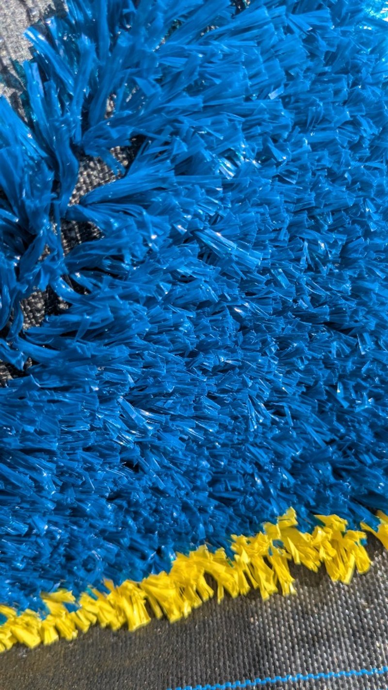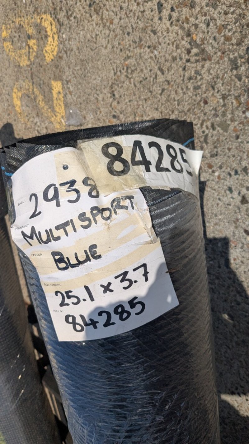 Synthetic Grass/Turf, Urban School Multi Sports- Blue Approx Dimensions: 3.7m L x 4.5m W = 16.65m2 Pile height: 19mm This surface offers great durability with the sports grade polyethylene yarn, made using state of the art polymer extrusion technology. Bid per sqm, Must take 16sqm