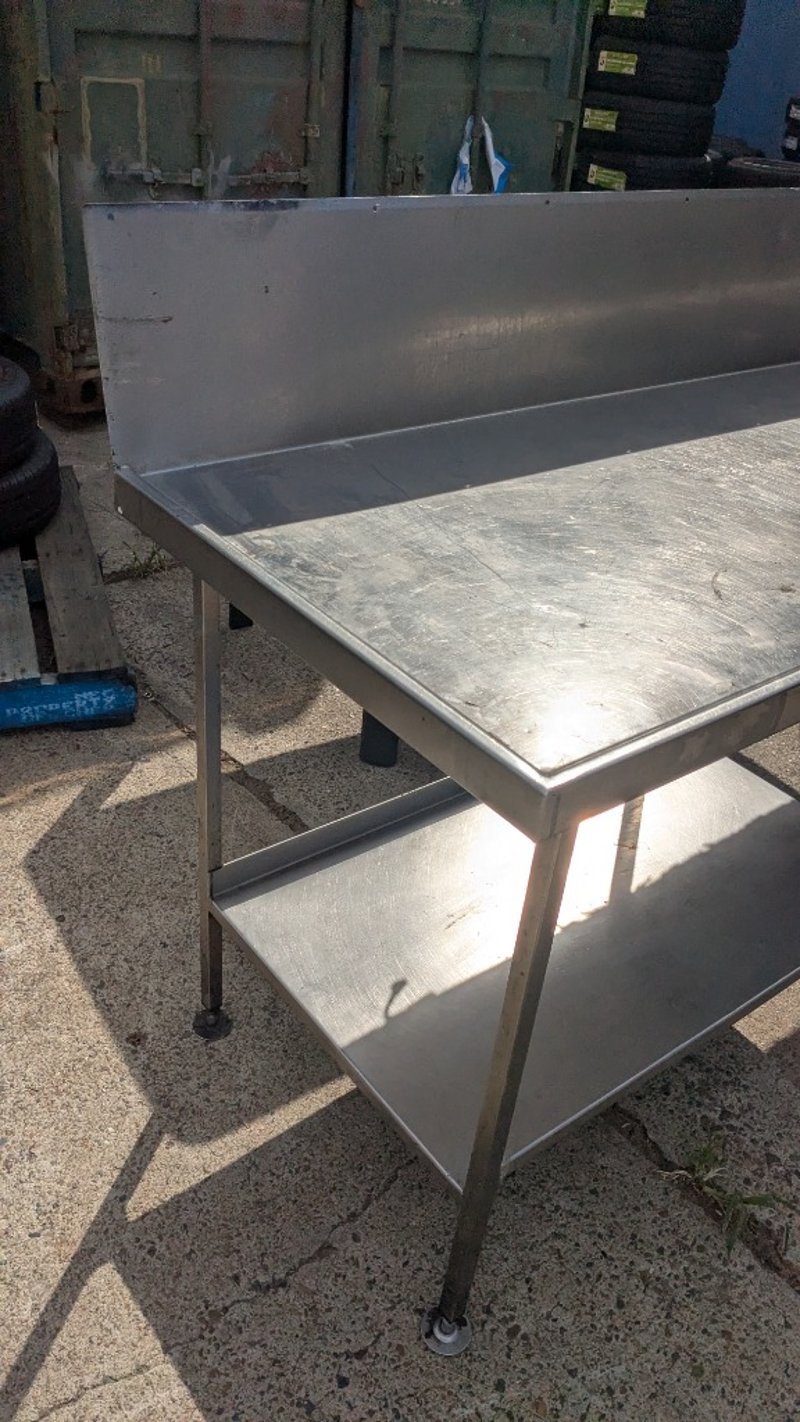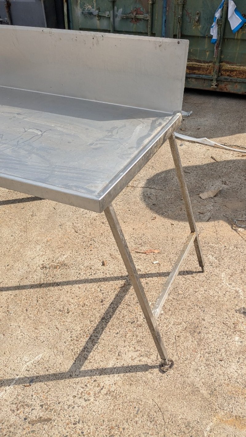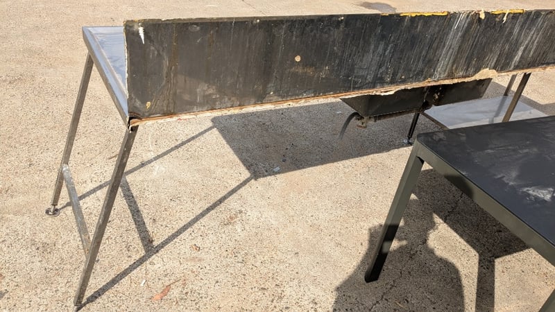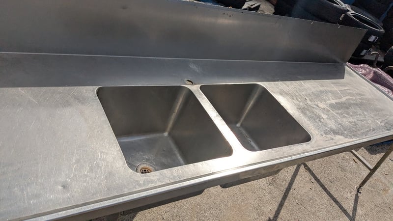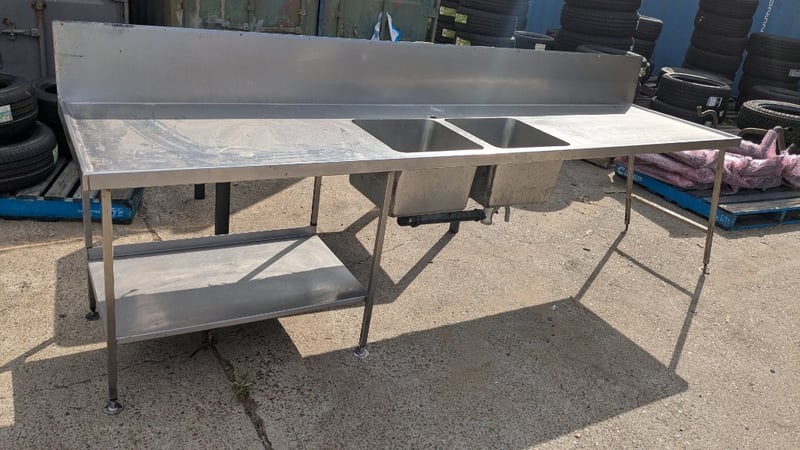 Stanley steel working bench double sink, with splash back Dimensions: 115 cm H x 320 cm W x 66 cm D NOTE: DISASSEMBLED, NOT