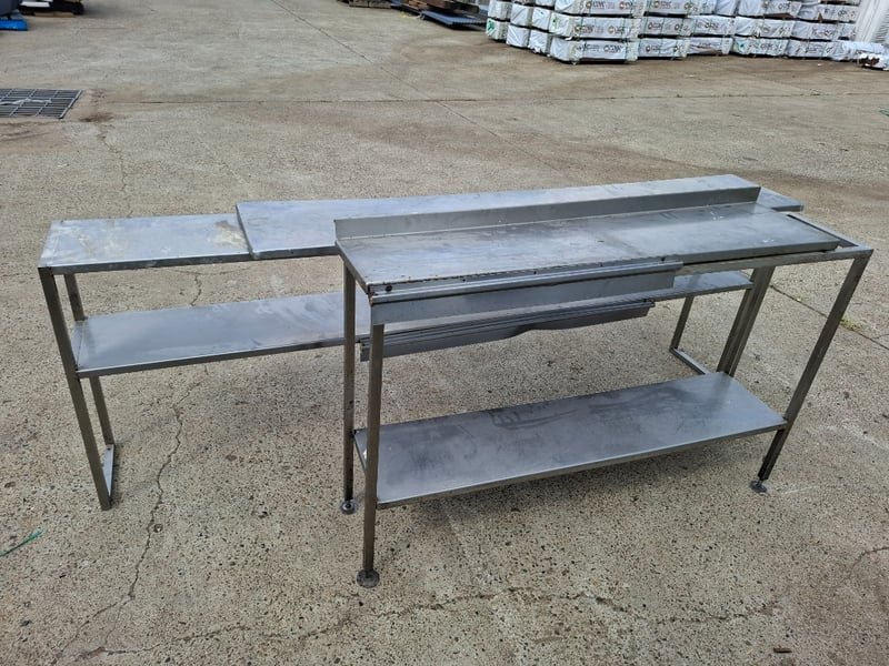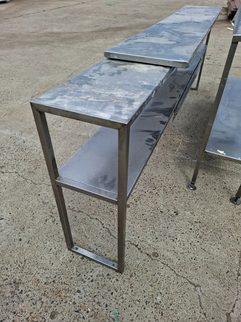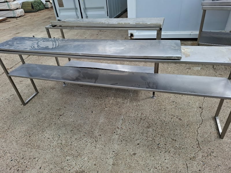 Assortment lot of Stanley steel commercial shelves Dimensions: 2400- 1400 mm(W) x 300- 360 mm(D) x 830- 900mm(H)