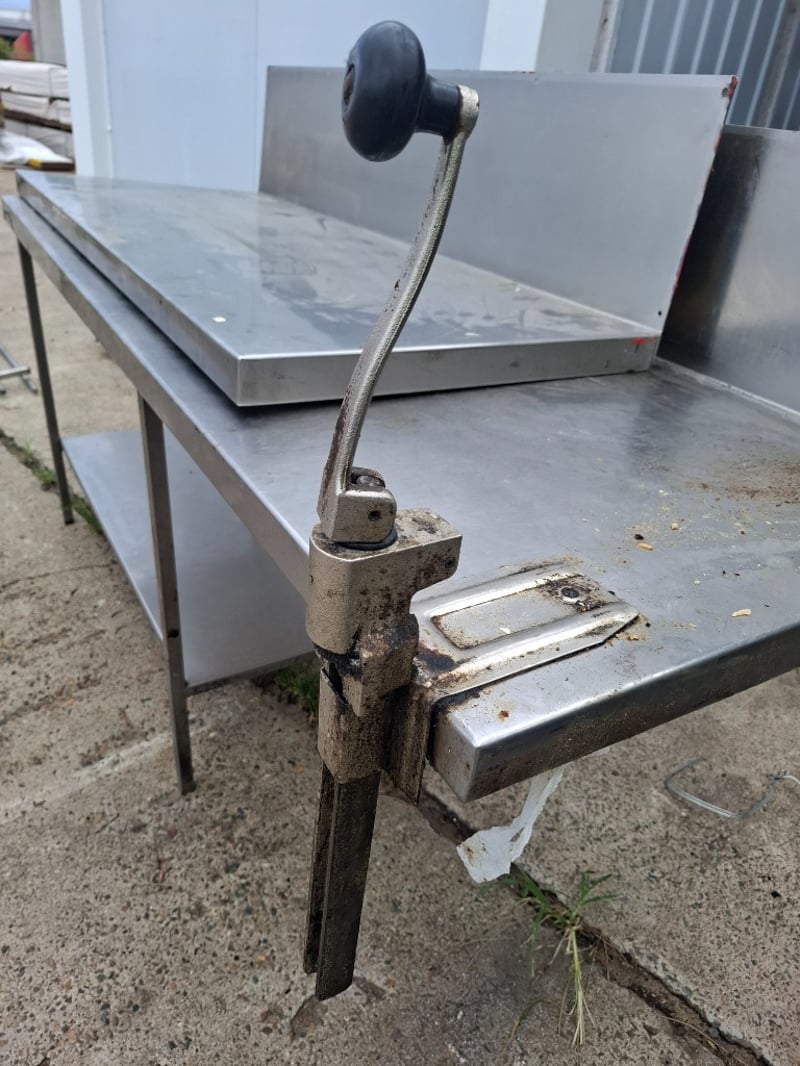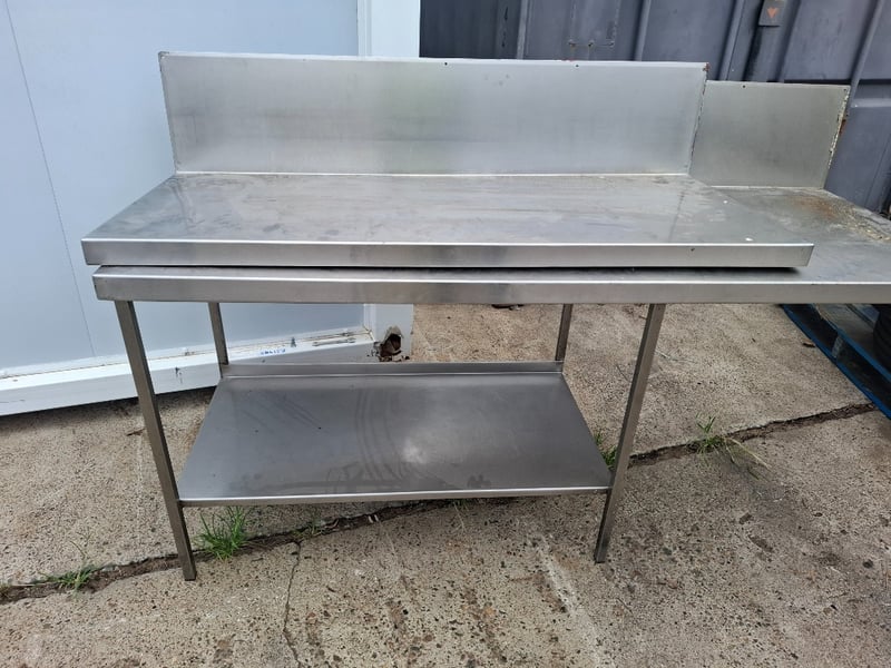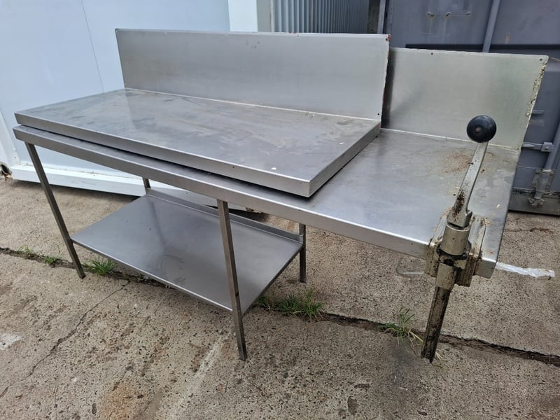 Assortment of Stanley steel working bench with splash back and extra top bench Dimensions: 190-145 cm ( W) x 60-70 cm ( D) x 116 cm ( H)SOLD AS LOT NOTE: CLEANING REQUIRED, DISASSEMBLED