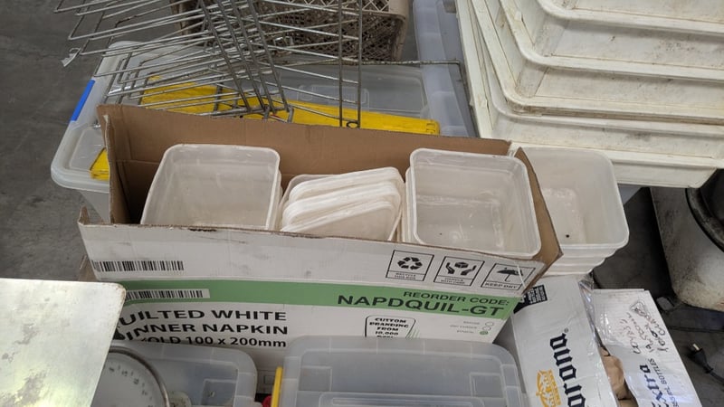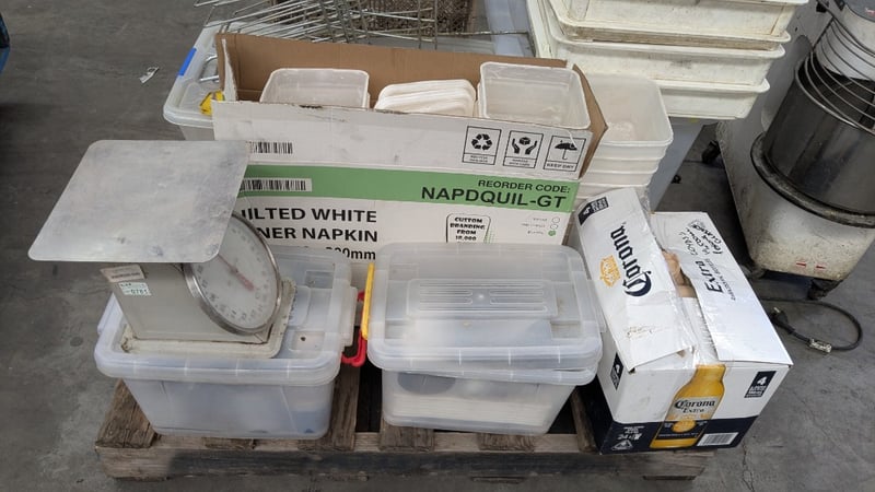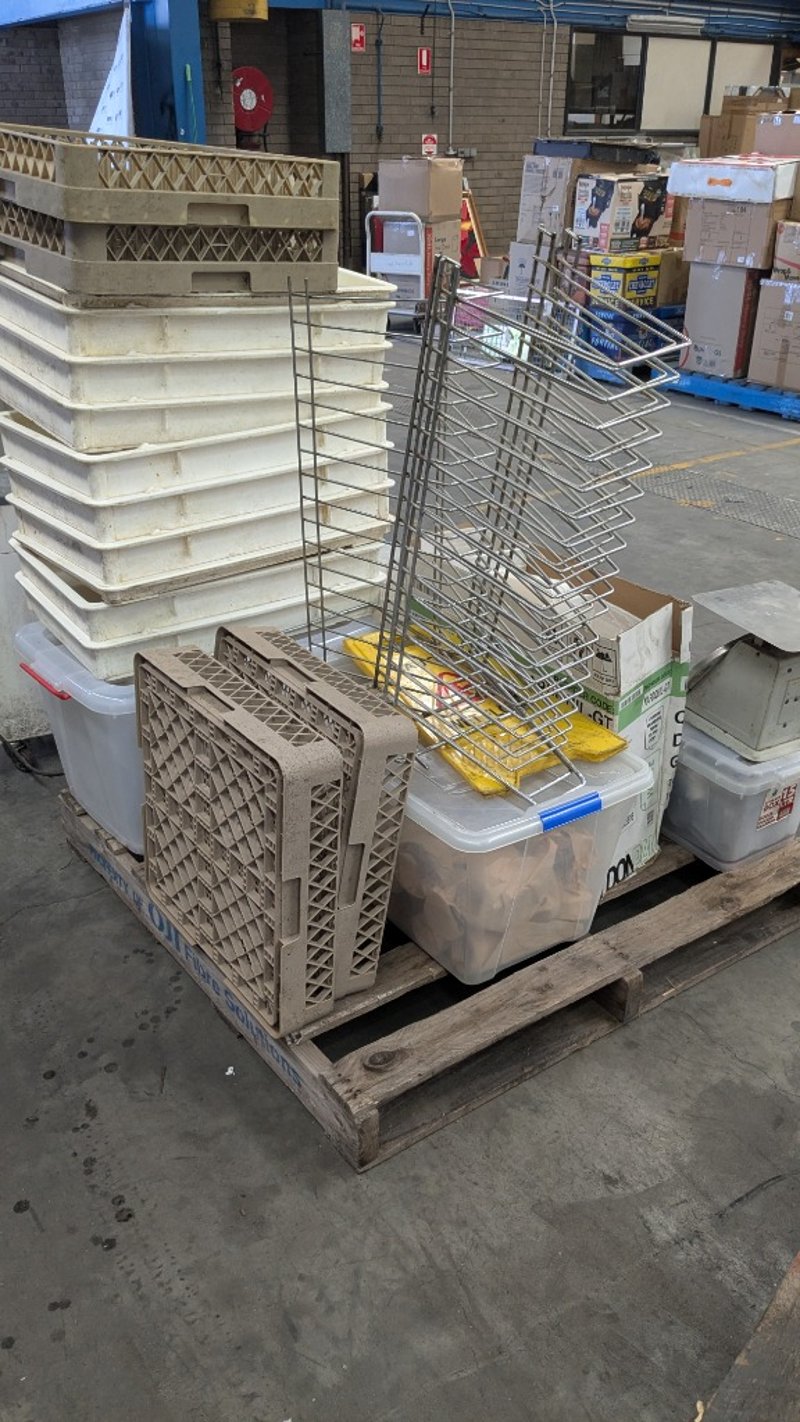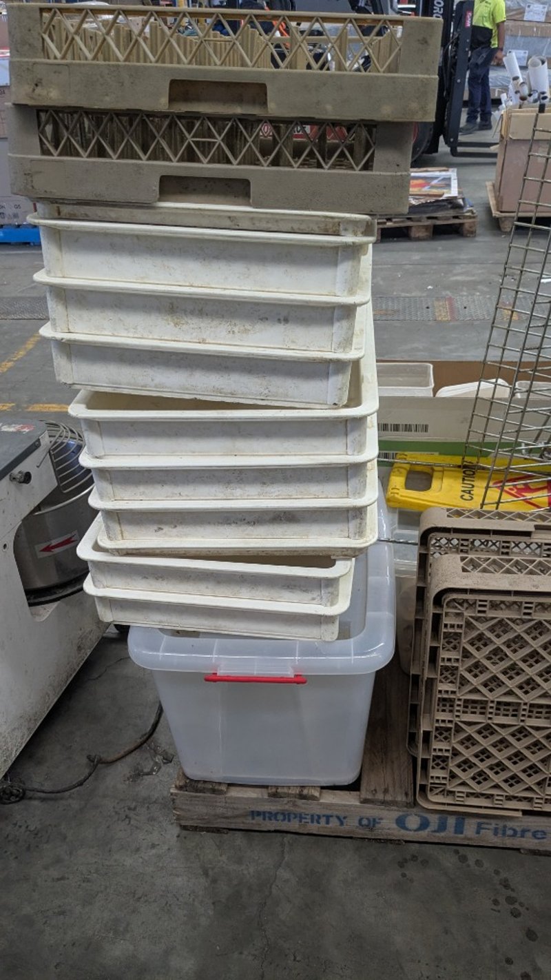 Assorted Catering Equipment, Includes Peroni Glasses, Plastic Storage Tubs, Cutlery Washing Baskets and more, Quantity to Pallet SOLD AS LOT