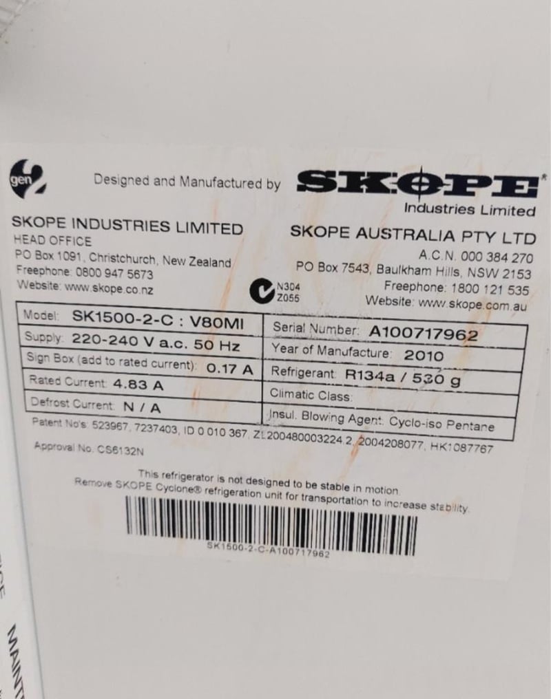 Three Door Refrigerator, SKOPE, MODEL SK1500-2C : V80MI, Approx. Dimensions: 183cm x 171cm x 69cm