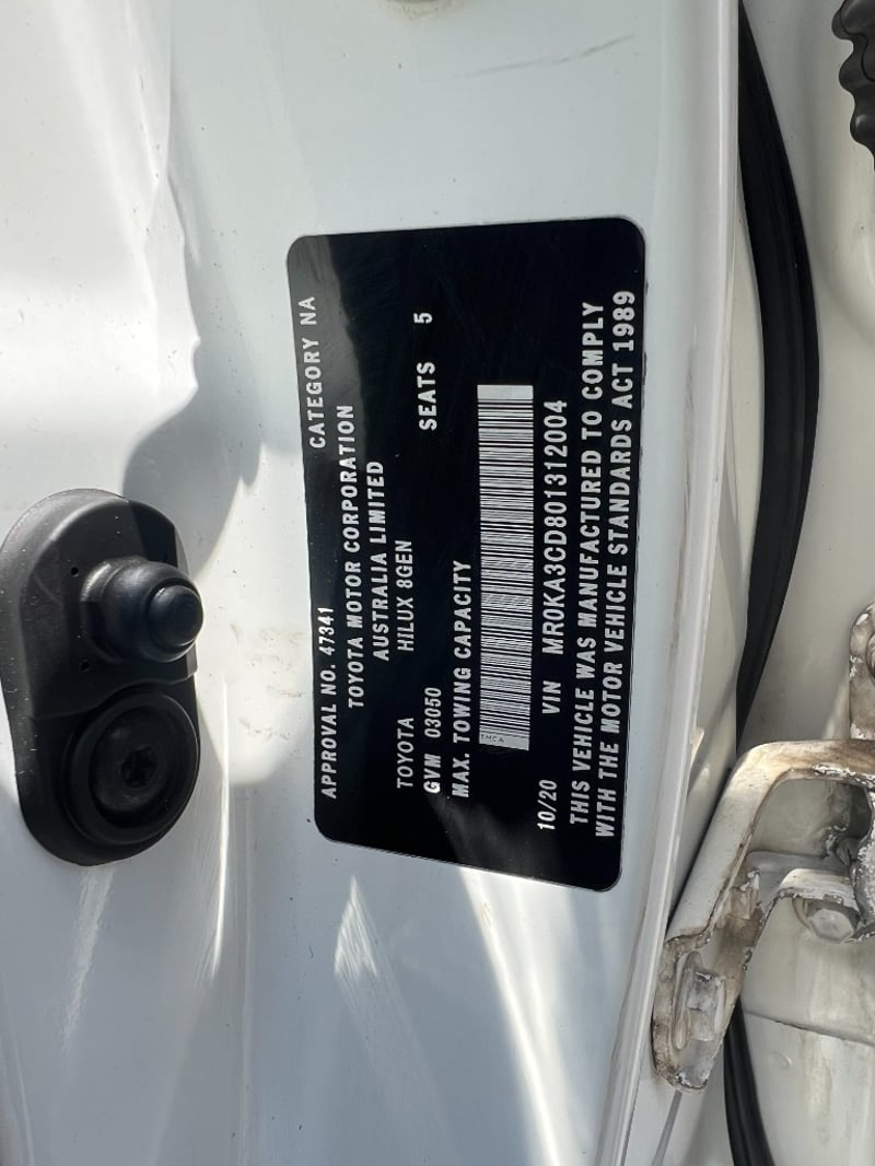 2020 Toyota Hilux SR 4 x 4 Year: 2020 Make: Toyota Model: Hilux SR Engine: 2.8L Turbo Diesel Transmission: Automatic Odometer Indicated: 102,589 VIN: MROKA3CD801312004 Description/Extras: Bull Bar, Snorkel, Side Steps Tow Bar, Refurbished Tray, Flashing Light, Battery Isolation, CB Radio, Log Books, Two Keys Sold Unregistered Inspection Recommended Key# 34 Mackay Location: #MACKAY Contact Kyle Haywood | Ph 0487 020 888 | [email protected] Holding Yard 3/263 Connors Road, Paget , MACKAY QLD, Australia