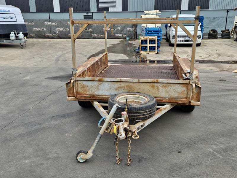 Sunshine Trailers Trailer Year: Unknown Make: Sunshine Trailers Model: Unknown Body: 6x4 Trailer Colour: White/Rust Configuration: Single Axel Suspension: Leaf Description: ATM: 2000 kg Tare: Unsighted Chassis No.: 609T20RTA62003218 Key # No Key
