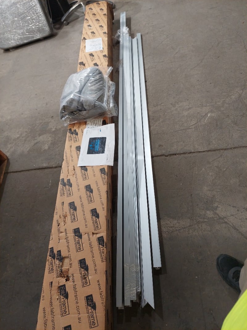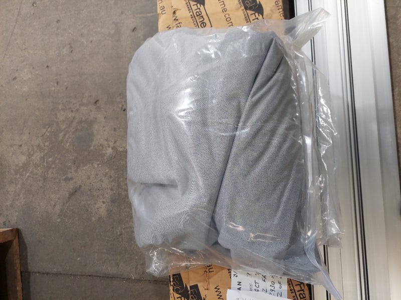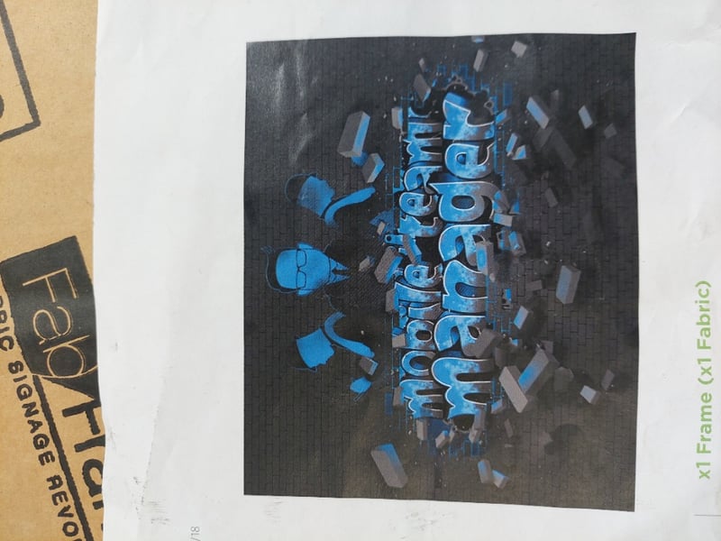 Fabric banner and frame 2980mm x 2400mm. Along with grey cushion.
