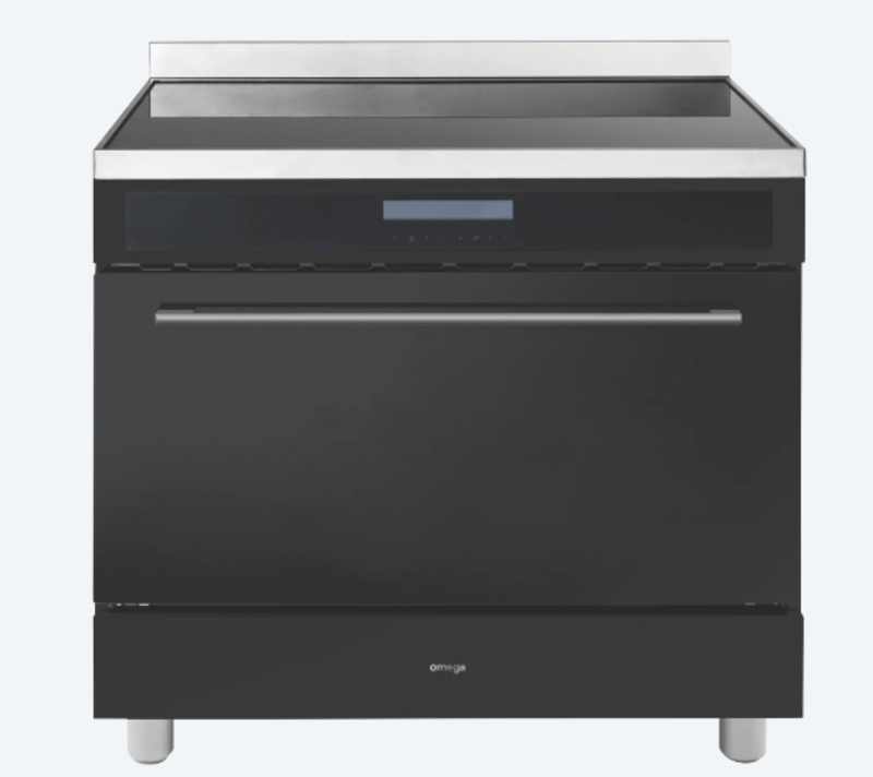 RRP $3,499 Omega Freestanding Oven, 900mm, Induction Cooktop Electric Oven, Colour Black, Model: OFOIC909B