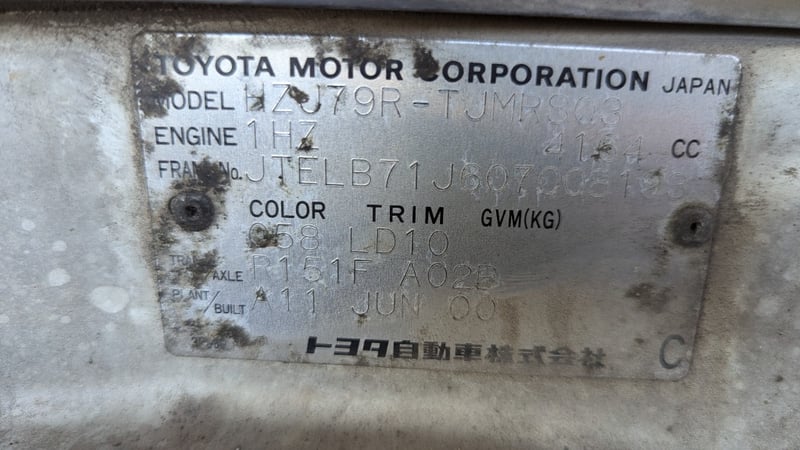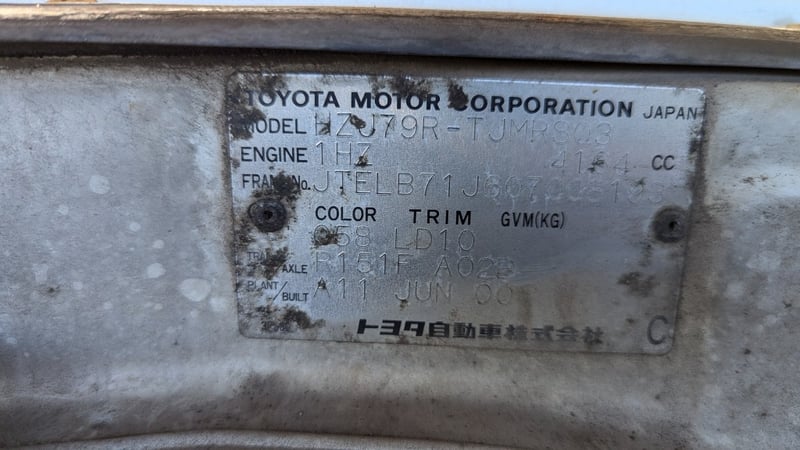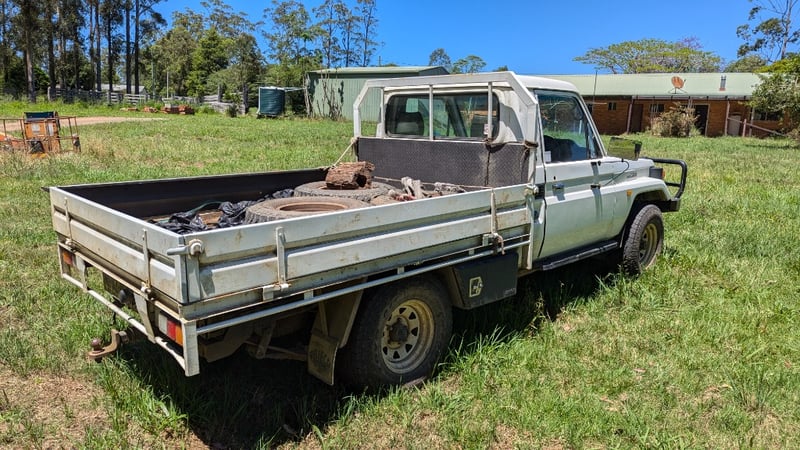 Year:2000Make: ToyotaModel :LandcruiserBody: Single Cab with Steel TraySeats: 2Configuration: 4 X4Odometer Indicated: 489134Transmission: 5 Speed ManualSuspension: Leaf SpringEngine: 1 HZVIN: JTELB711607008193Description/Extras: Steel Tray, 2 X Bower Under Storage Boxes, 2 X XTreme Spot Lights, Winch, 2 Way RadioGVM: kgs 3200As Standard Auction Practice all Vehicles are Sold UnregisteredLOCATION: Warrel Creek