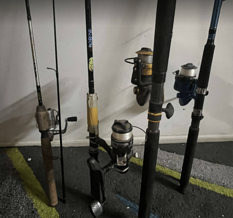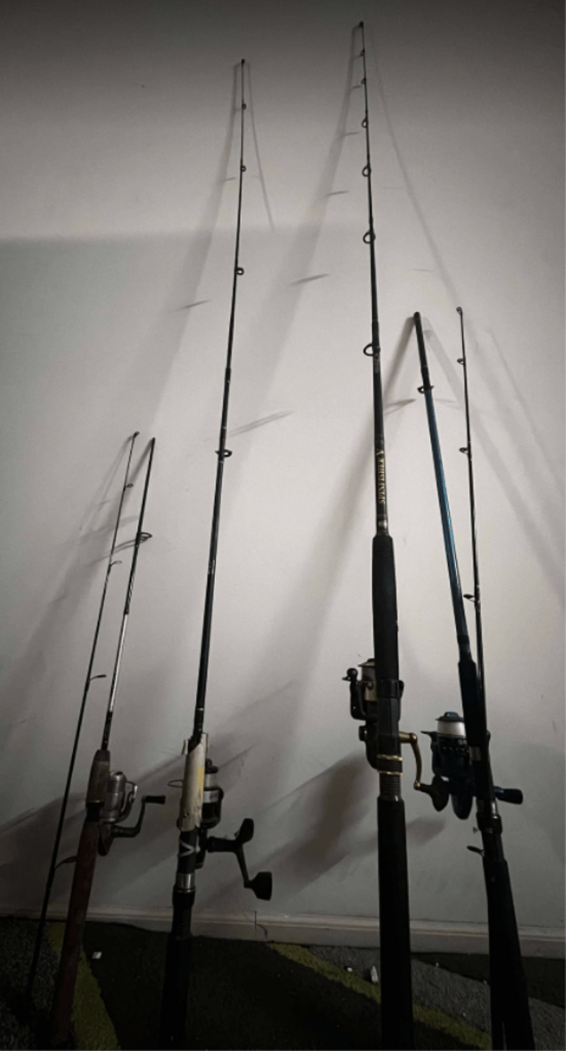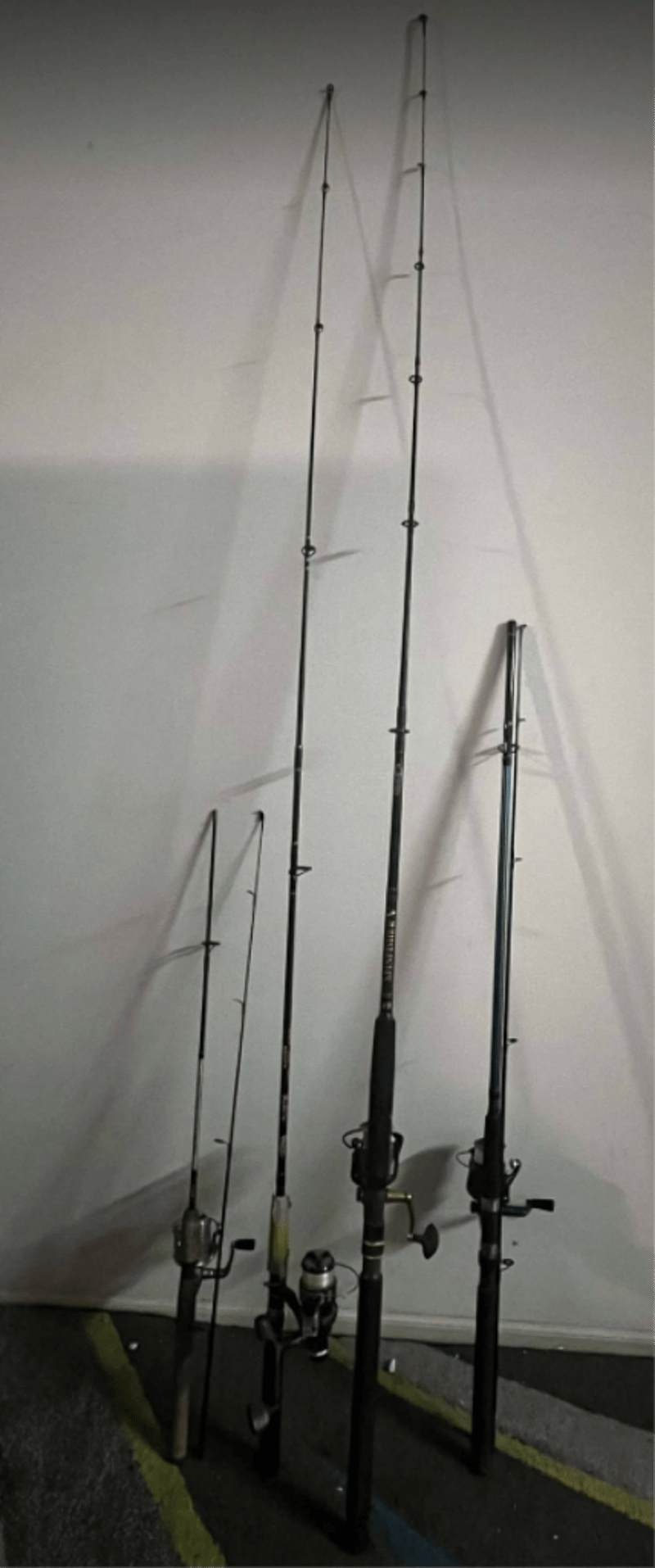 Fishing rods and reels ( 1 x Mega Tournament, 1 x Jarvis Walker Redbone, 1 x Spinfisher V & 1 x Sport Fisher) Refer to images