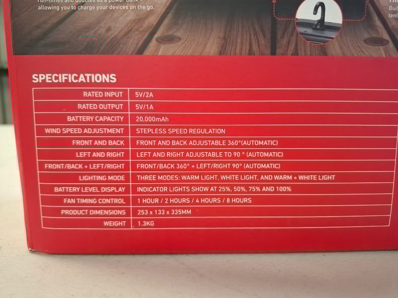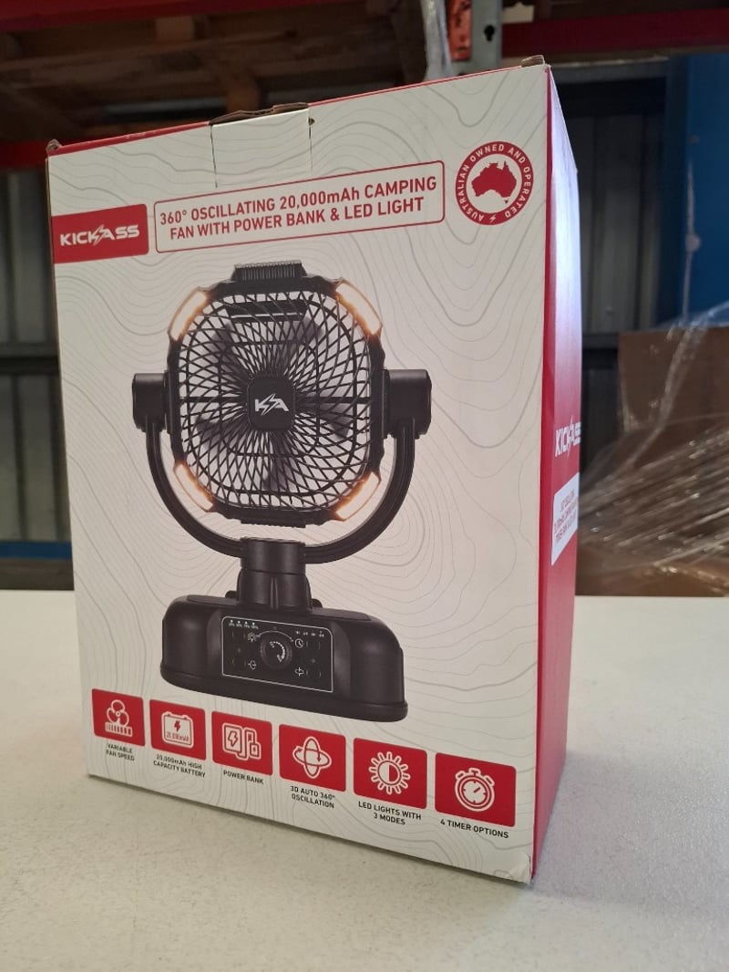 KickAss 360° oscillating 29.00mAh Camping Fan with powerbank & Led light