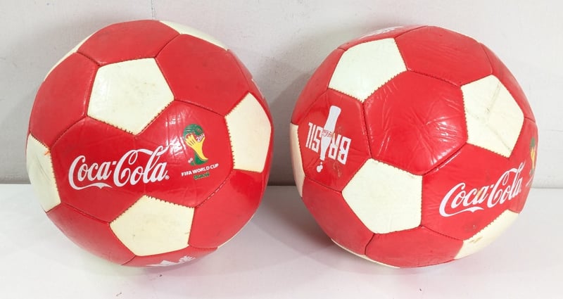 ASSORTED COCA-COLA MERCHANDISE, 4 X Drinking Glass, Large Bottle Plastic, 2 x Soccer Balls, 1 Shoulder Bag, 1 Fridge Magnet