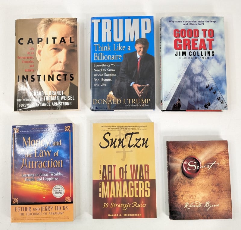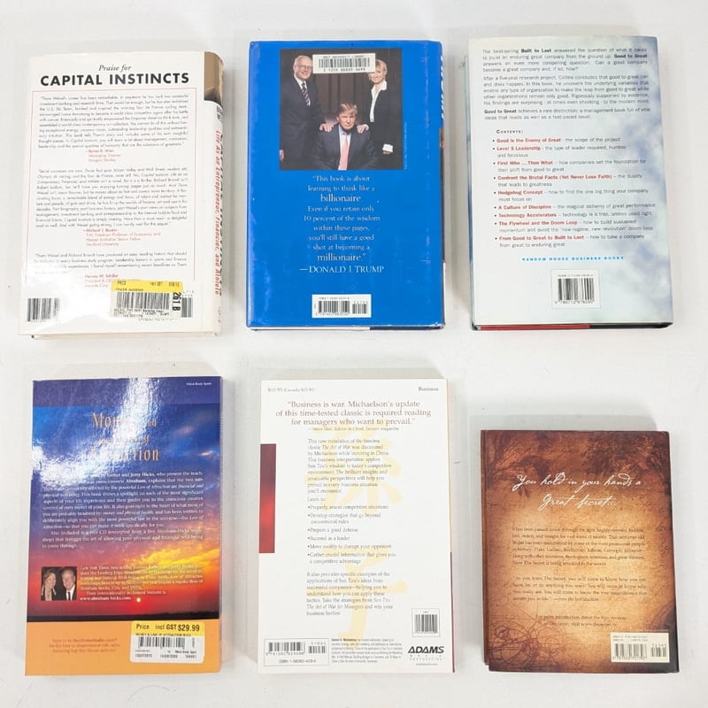 BOOKS QTY 6, Capital Instincts, Trump Think Like Billionaire, Good to Great, Money and the Law of Attraction, The Art of War for Managers, The Secret
