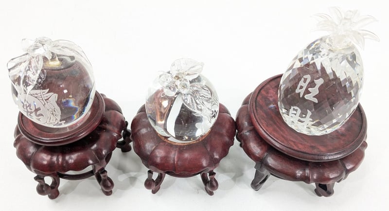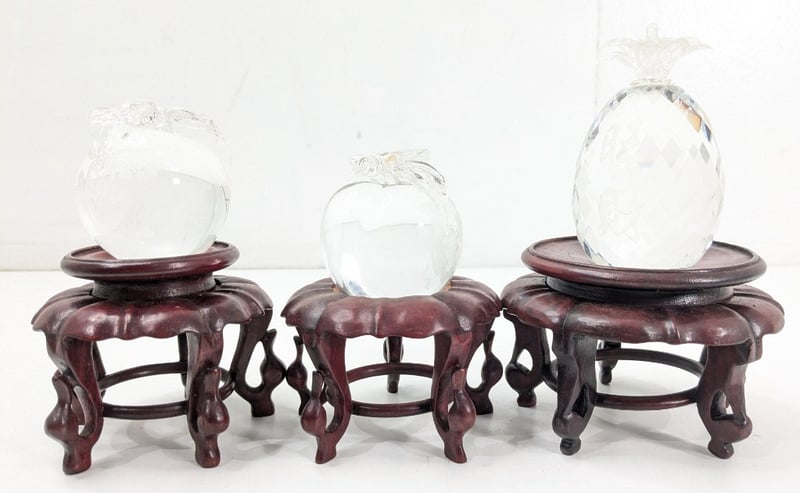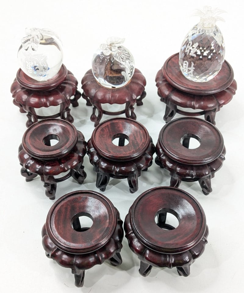 ASSORTMENT OF CHINESE CRYSTALS WITH STANDS, 3 Crystals and 8 wooden stands