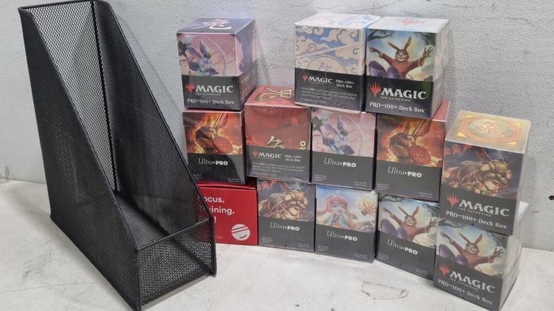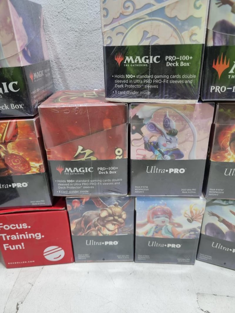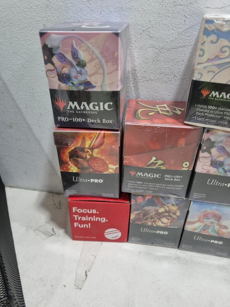 Ultra-pro, pro 100 + Deck Box lot, assorted deck cards.